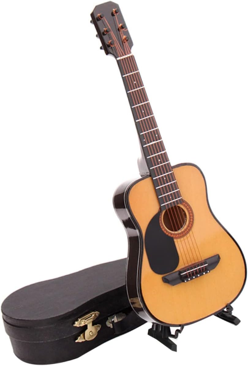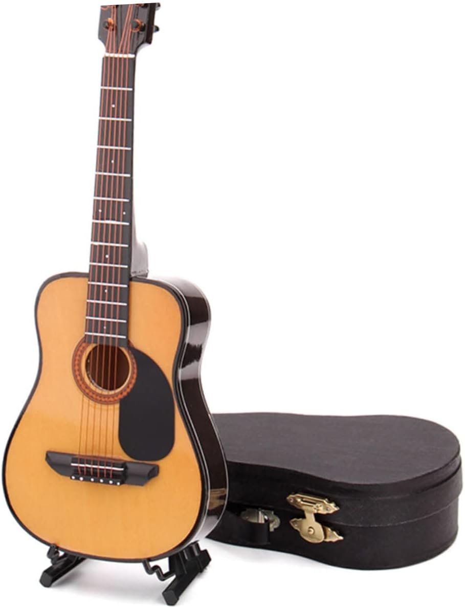 Chitarra in miniatura: modello di chitarra classica in legno, chitarra elettrica in miniatura con supporto e custodia, accessorio realistico per strumenti musicali, piccolo basso per la decorazione domestica. Arredamento: adorabile lo rende più attraente e aggiungerà un'atmosfera classica alla tua casa. Umidificatore antigravità: ornamento per chitarra mini strumento dal design raffinato, regalo perfetto per gli amanti della musica. Chitarra: la pregevole fattura non sbiadisce facilmente. per la tua famiglia, i tuoi amici, i tuoi colleghi. Mini ornamento per chitarra: realizzato in materiale, per un uso a lungo termine e non facile da deformare. dettagli raffinati e belle proporzioni, i dettagli possono anche essere visti chiaramente e reali.