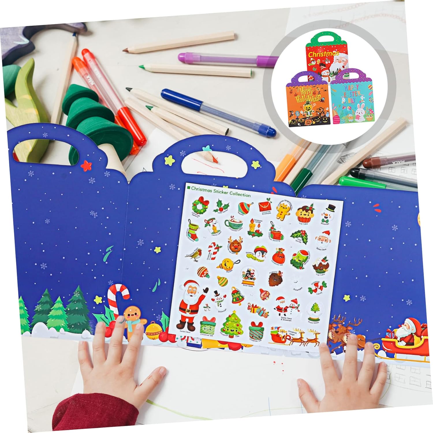 Libro di adesivi per bambini: il libro di adesivi adorabile e interessante progettato con colori splendidi e vivaci motivi a cartoni animati, adesivi per bambini. Libro di adesivi per i più piccoli - Il libro di adesivi con maniglia portatile e contenitore per adesivi, facile da trasportare, per i bambini in movimento, libro di adesivi con scene di Natale. Adesivo scena di Halloween: possono essere rimossi in qualsiasi momento e non lasceranno segni di colla sulla superficie quando vengono rimossi, libro di adesivi educativo per bambini. Libro di adesivi per bambini piccoli: può migliorare l'immaginazione, la creatività, la coordinazione occhio-mano e il pensiero narrativo dei bambini, libro di adesivi per bambini. Libri di adesivi a tema festival: i bambini possono applicarli facilmente su finestre, vetri, specchi, pareti, tazze d'acqua, braccia, ecc., un libro di adesivi fai-da-te.