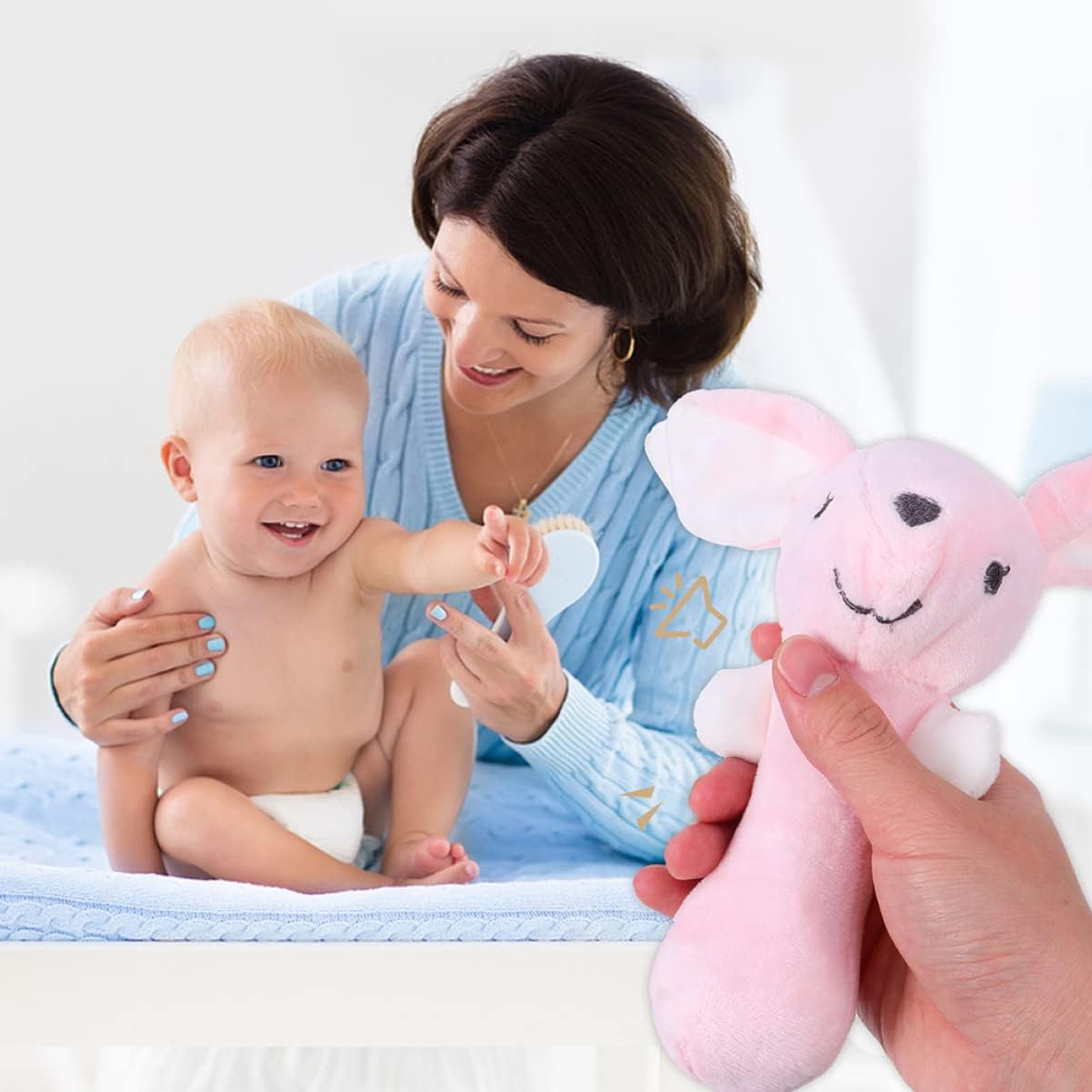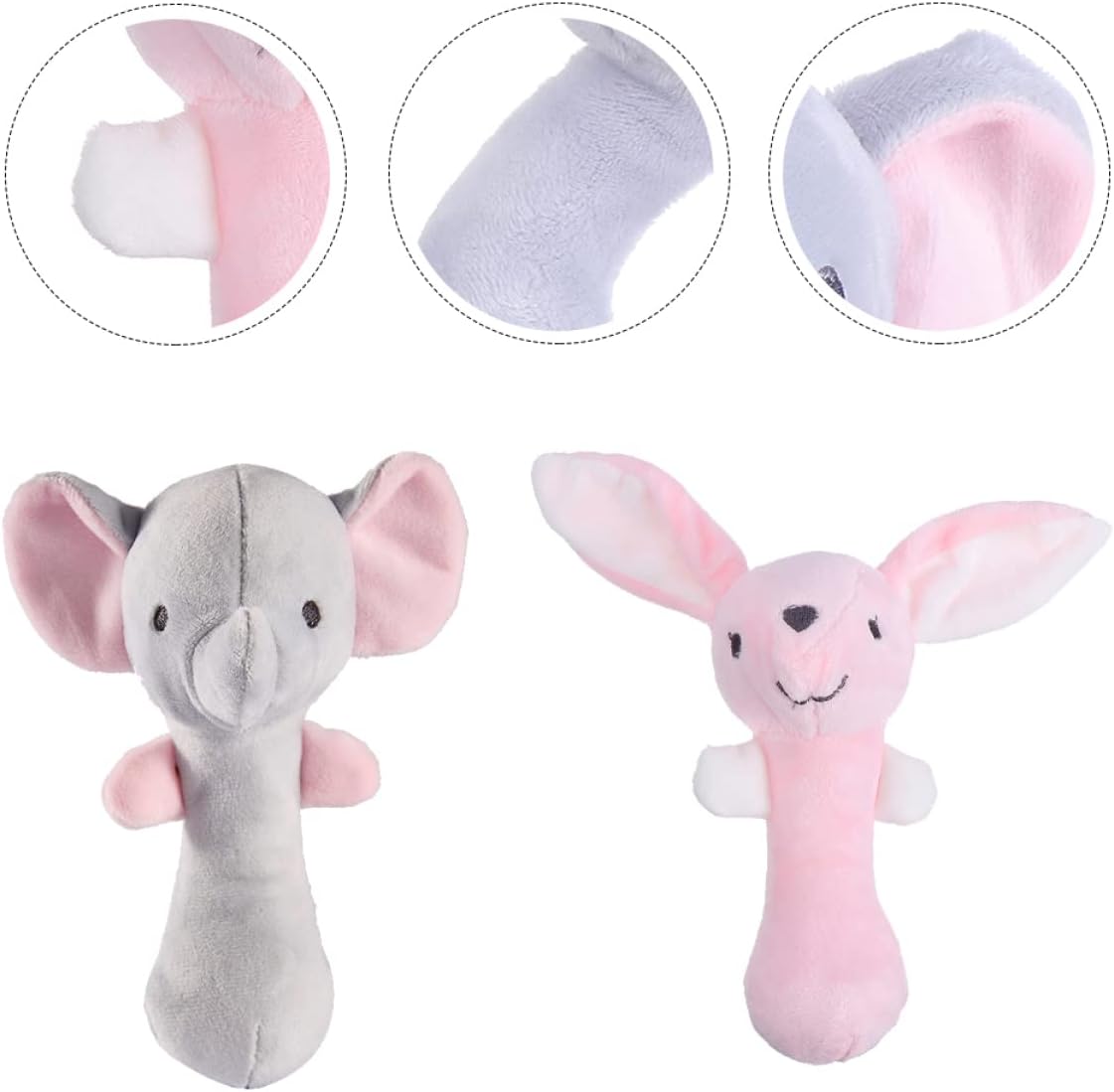 Giocattolo a sonaglino a mano per animali di peluche: il giocattolo a sonaglino per bambini ha un design e materiali eccellenti, lavorazione squisita, che è un buon giocattolo per i bambini. Giocattoli con sonagli a mano: i colori vivaci e la forma di animale dei cartoni animati attirano l'attenzione del bambino, sviluppando il riconoscimento del colore e della forma. Giocattolo sonoro: e sviluppa anche lo sviluppo sensoriale del bambino, il riconoscimento del colore, la percezione dell'animale e promuove lo sviluppo dell'udito, lo sviluppo del senso del tatto del bambino è molto utile, la capacità di auto-esplorazione del bambino. di peluche: dopo 3 mesi, il bambino sarà pieno di curiosità per il mondo e avrà una nuova conoscenza dei colori. la famiglia ha bisogno di coltivare l'udito, la vista e i sentimenti del bambino durante questo periodo. Peluche a sonaglino: gli adorabili elefanti e coniglietti dei cartoni animati e il design colori vivaci rendono questo giocattolo super adorabile e attraente per i tuoi piccoli.
