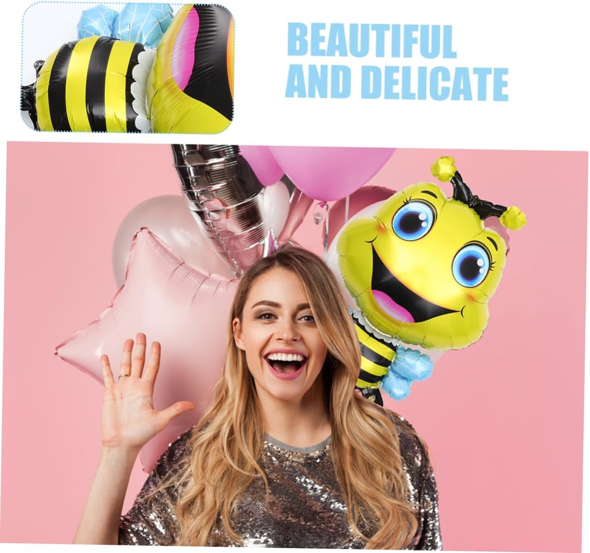 Palloncino decorativo: realizzato in pellicola di alluminio/foglio di alluminio, ha una buona tenacità e non c'è bisogno di preoccuparsi di strappi o rotture durante il gonfiaggio, palloncino gonfiabile a forma di ape Palloncino originale: bello e delicato, aggiunge bellezza alla tua festa e può attirare l'attenzione degli ospiti, decorazione con palloncino gonfiabile Ornamento palloncino in alluminio: adozione di materiale in pellicola di alluminio/foglio di alluminio, che è leggero, con lavorazione squisita e di , palloncino ape dei cartoni animati Palloncino ape creativo: grandi ornamenti per feste a forma di ape aggiungono più divertimento alla festa di compleanno, ecc. del tuo , disposizione della festa palloncino ape Decorazione a palloncino: punto culminante della tua festa e la tua attenta disposizione lascerà un'impressione profonda su tutti gli ospiti, forniture per feste di compleanno con palloncini ape