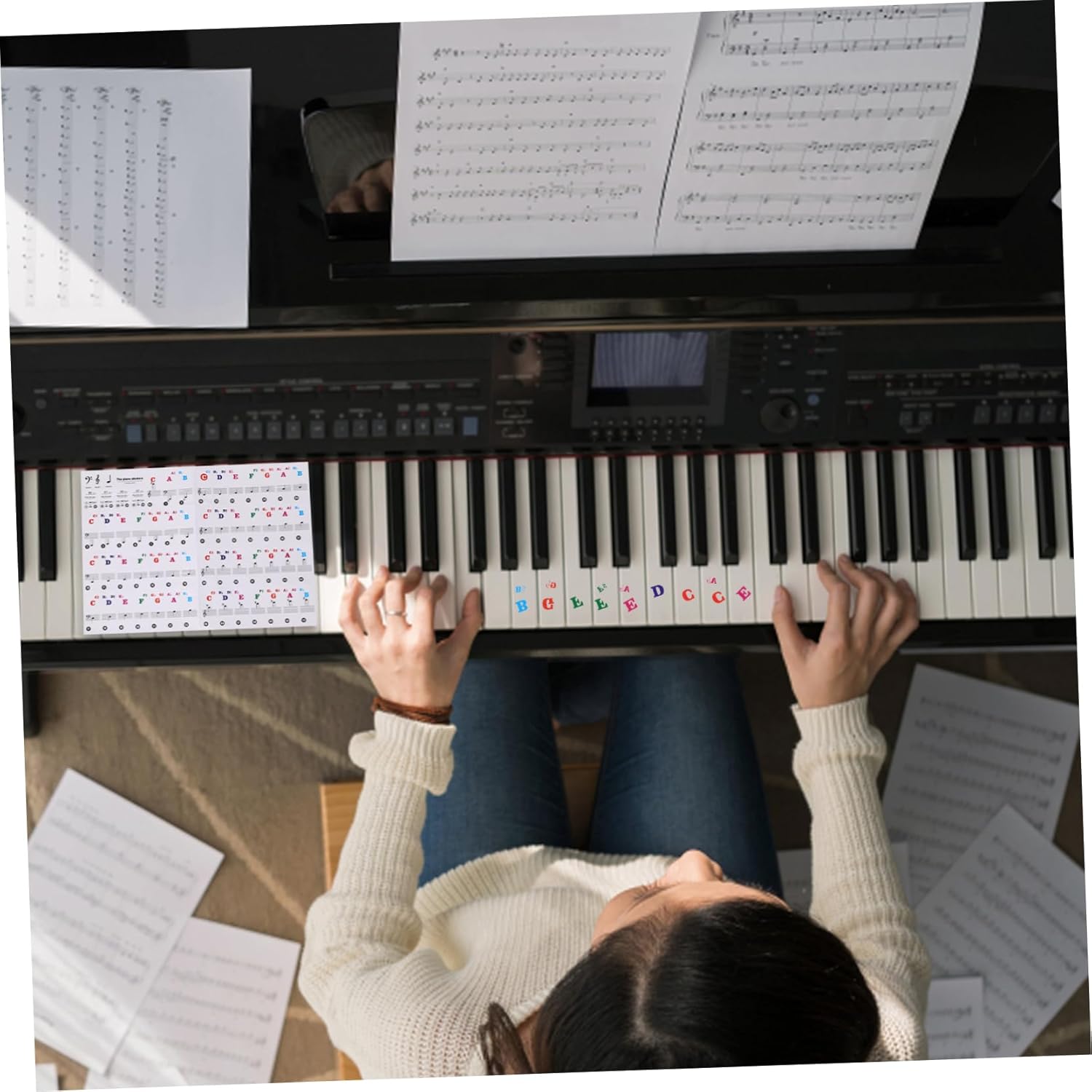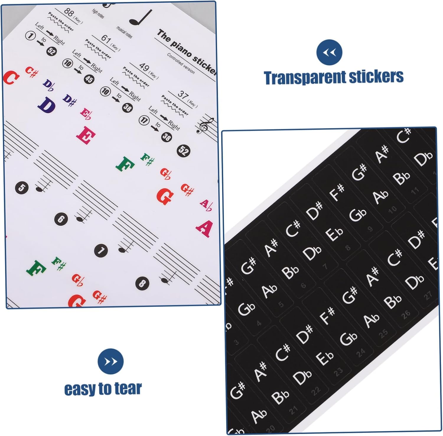 Adesivi per pianoforte: la lavorazione degli adesivi per tastiera è perfetta e avrai esperienza durante l'utilizzo. Note sull'adesivo pianoforte: l'adesivo è trasparente e sottile, facile da applicare, la pellicola non sbiadisce, una volta strappata non lascia tracce di adesivo. Tastiera per pianoforte: questo adesivo per tastiera per pianoforte facile da applicare e rimuovere, può essere rimosso facilmente. Adesivo per tastiera e pianoforte: caratteristico e raffinato con un design professionale. design semplice e generoso, linee morbide. Striscia per tastiera: il design ragionevole rende la striscia per tastiera del pianoforte adatta per organi elettronici, il che è molto comodo da usare.