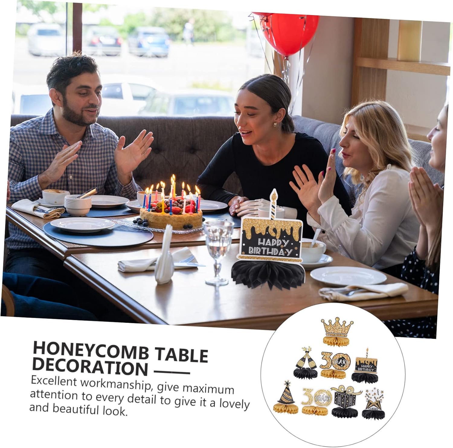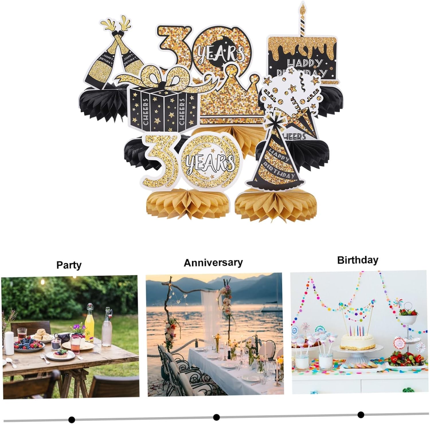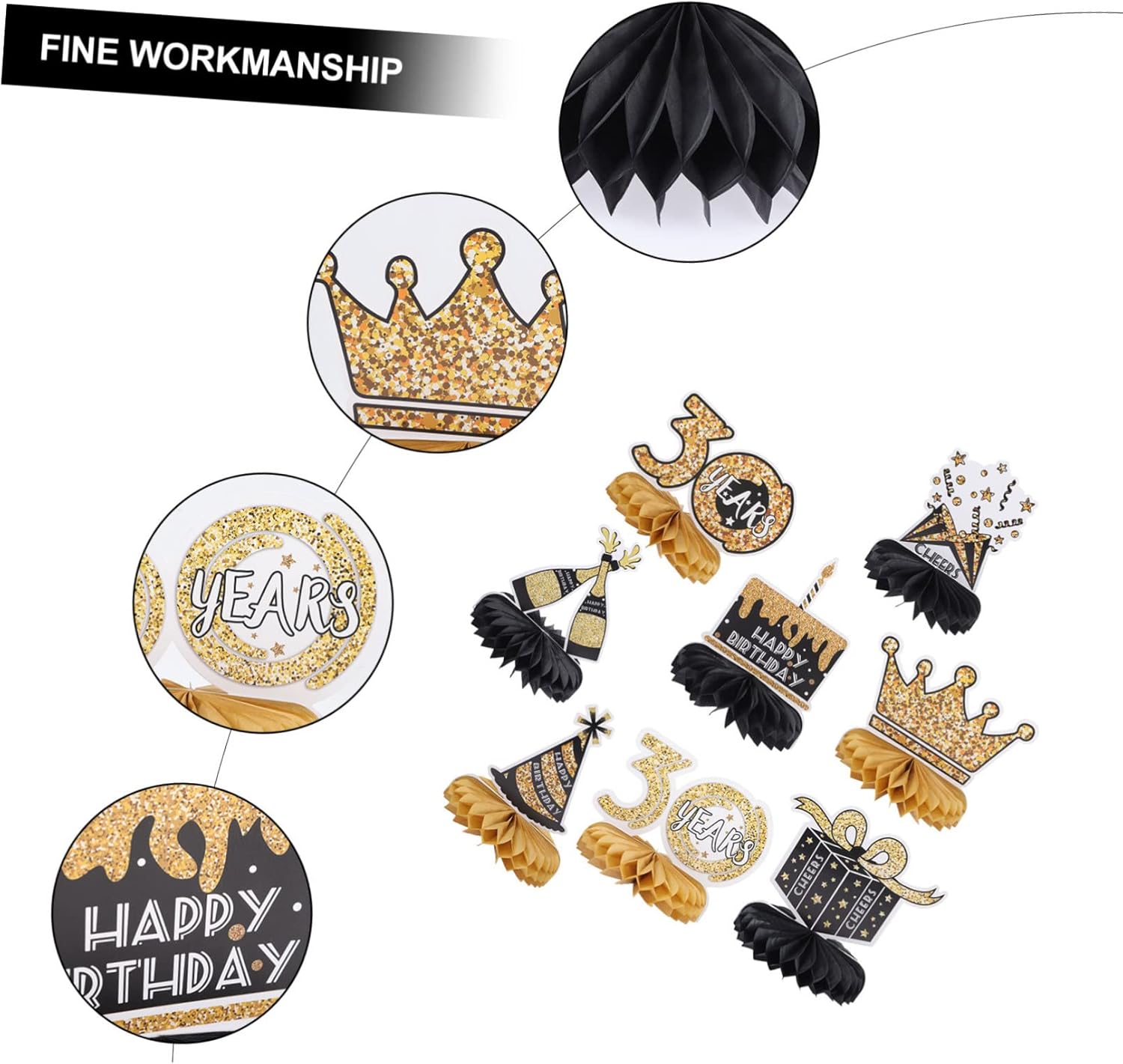 ifundom Decorazioni da tavola per il 30° Compleanno 8 Pezzi Centrotavola a Nido d'Ape Decorazioni per Feste del 30° Compleanno Donna Uomo Carta Oro per Festeggiamenti
