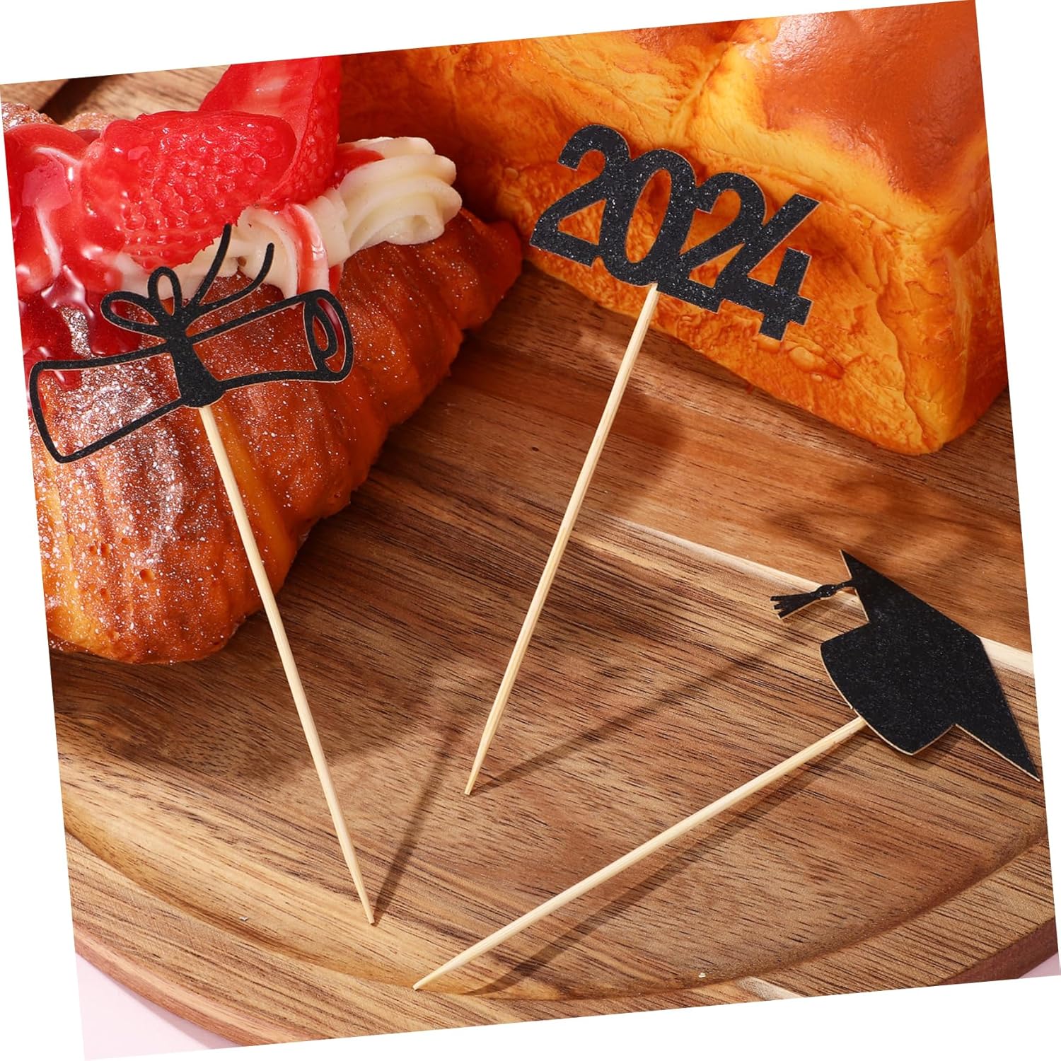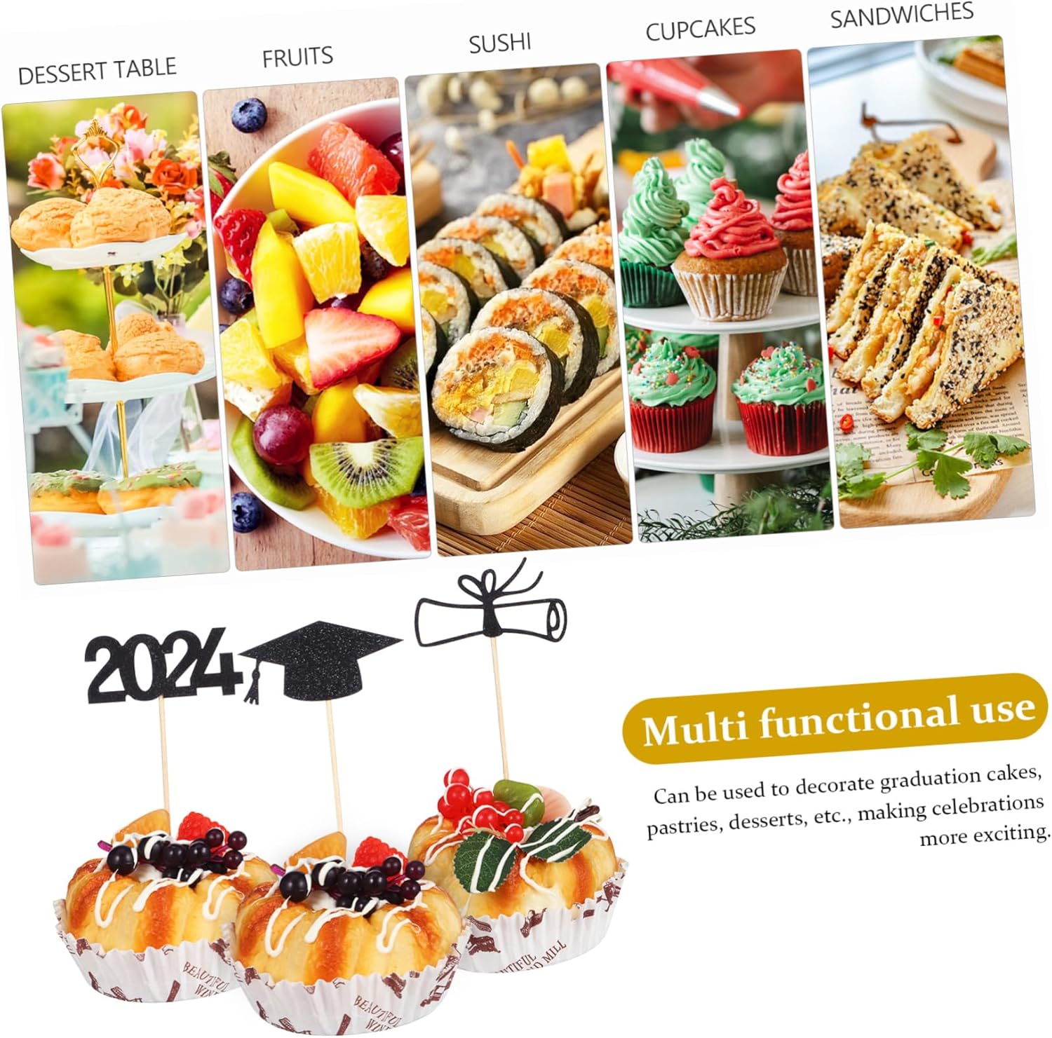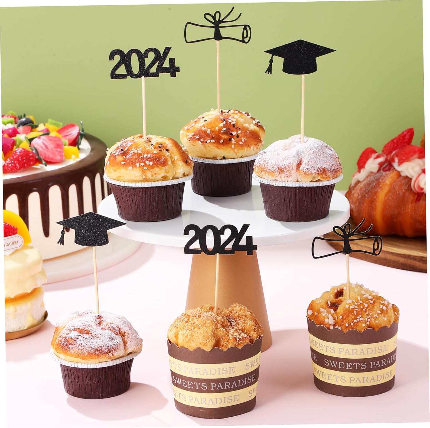 FORNITURE PER FESTE - MATERIALI DI QUALITÀ ALIMENTARE: Realizzati con carta e legno collaudati che sono sicuri per il contatto diretto con il cibo, questi toppers per torta sono una scelta affidabile per decorare i dessert. Topper per torta con cappello di laurea - PER TUTTI I LAUREATI: questi toppers per torta possono essere utilizzati per tutte le cerimonie di laurea, comprese le lauree delle scuole superiori, dell'università e dell'asilo. Toppers per cupcake laurea 2024 - Aumenta la festa: questi toppers per torta a tema laurea sono un'eccellente aggiunta alla tua celebrazione e trasformano la torta nel fulcro della festa. Topper per torta di laurea - Forniture per feste di laurea: progettati con modelli classici tra cui cappelli di laurea e diplomi, questi toppers per torta catturano l'essenza del successo accademico. Topper per cupcake di laurea - Aggiungi entusiasmo: questi toppers per torta di laurea sono perfetti per festeggiare la tua laurea e aggiungere entusiasmo, rendendo la torta il centro della festa.