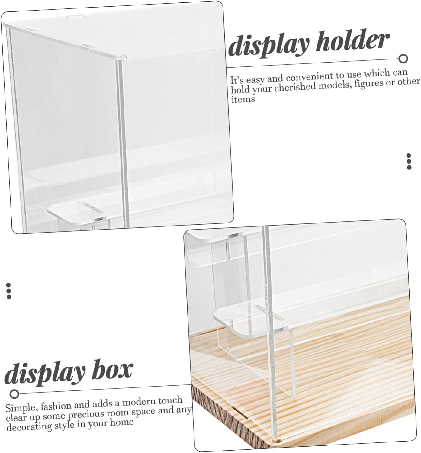Vetrina: supporto: le vetrine per oggetti da collezione possono essere belle e pratiche per trovare e conservare il tuo vaso, la tua statuina. Custodia protettiva per bambole: materiale in legno e acrilico, robusta, pratica e . Espositore trasparente: può essere posizionato in soggiorno, studio, camera da letto, scrivania, bancone, ecc. Vassoi in acrilico per esposizione: aspetto trendy e chic, colore semplice e pratico. Vetrina semplice: scatola espositiva in acrilico trasparente: perfetta per i negozi per esporre materiali artistici, oggetti da collezione, figurine, bambole, ecc. Ciò consente al tuo prezioso oggetto di passare dallo stare sullo scaffale all'essere magnificamente esposto.