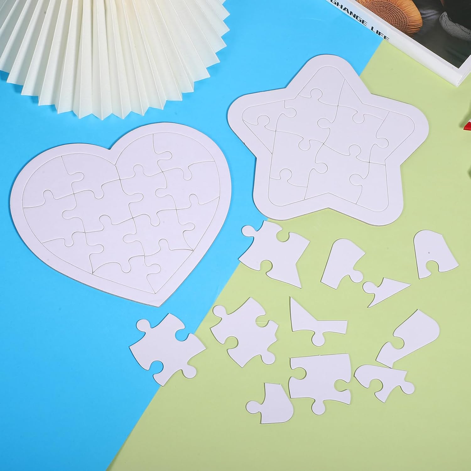 Puzzle da disegnare - set di puzzle divertenti con set di puzzle a forma di cuore e set di puzzle a forma di stella, giocattoli puzzle Puzzle vuoti - sviluppa l'immaginazione e la creatività e promuove la logica, piccoli puzzle Puzzle vuoti - il processo del puzzle aiuta ad allenare la coordinazione occhio-mano dei bambini, puzzle vuoto Puzzle vuoti da colorare per bambini - realizzati in materiale cartaceo robusto, superficie spessa, buona sensazione, puzzle fai da te Puzzle vuoti da colorare - Giochi puzzle per sviluppare la logica dei bambini e migliorare la coordinazione occhio-mano, giocattoli puzzle da colorare