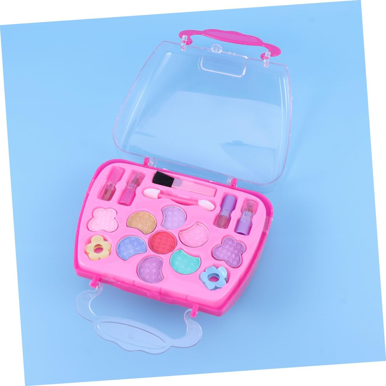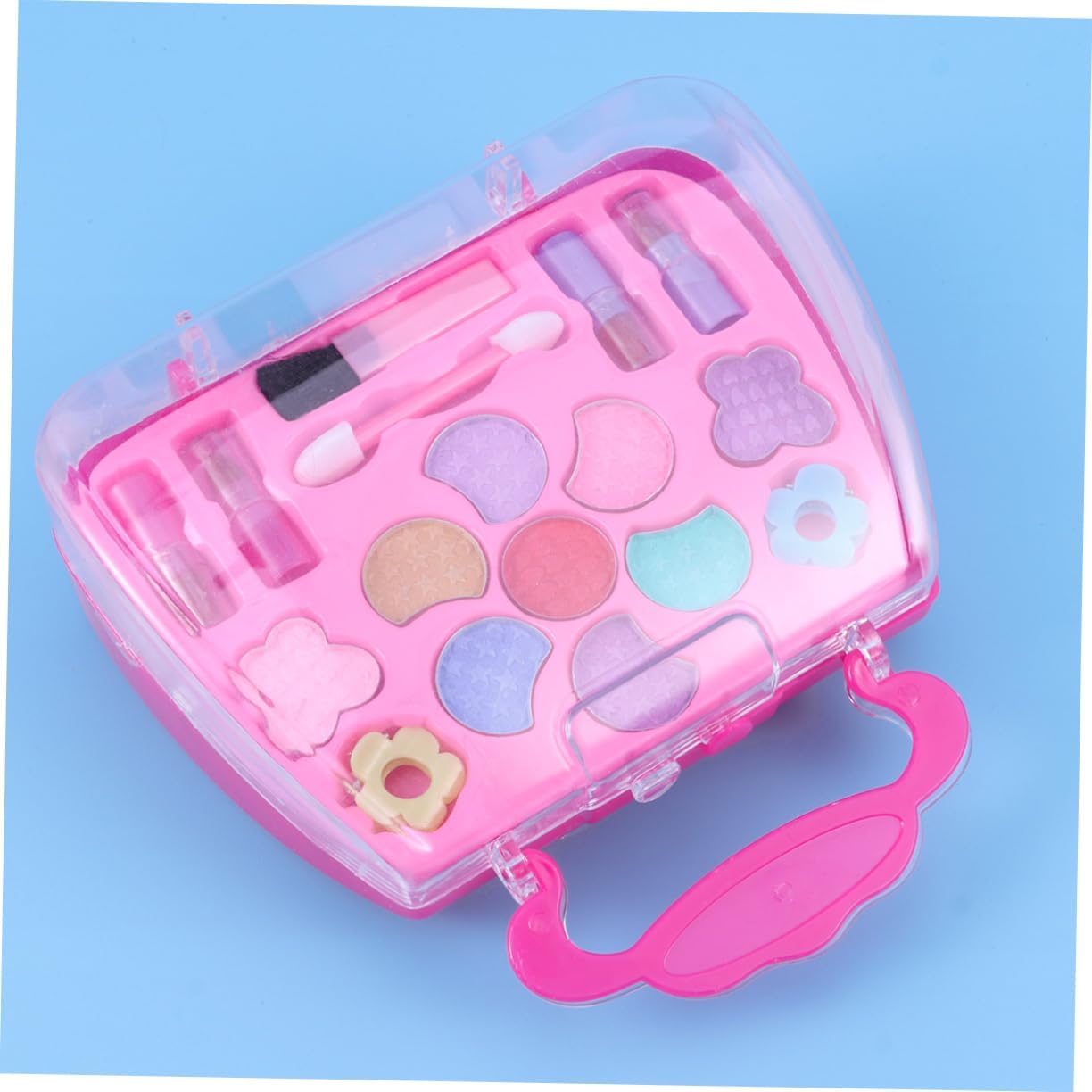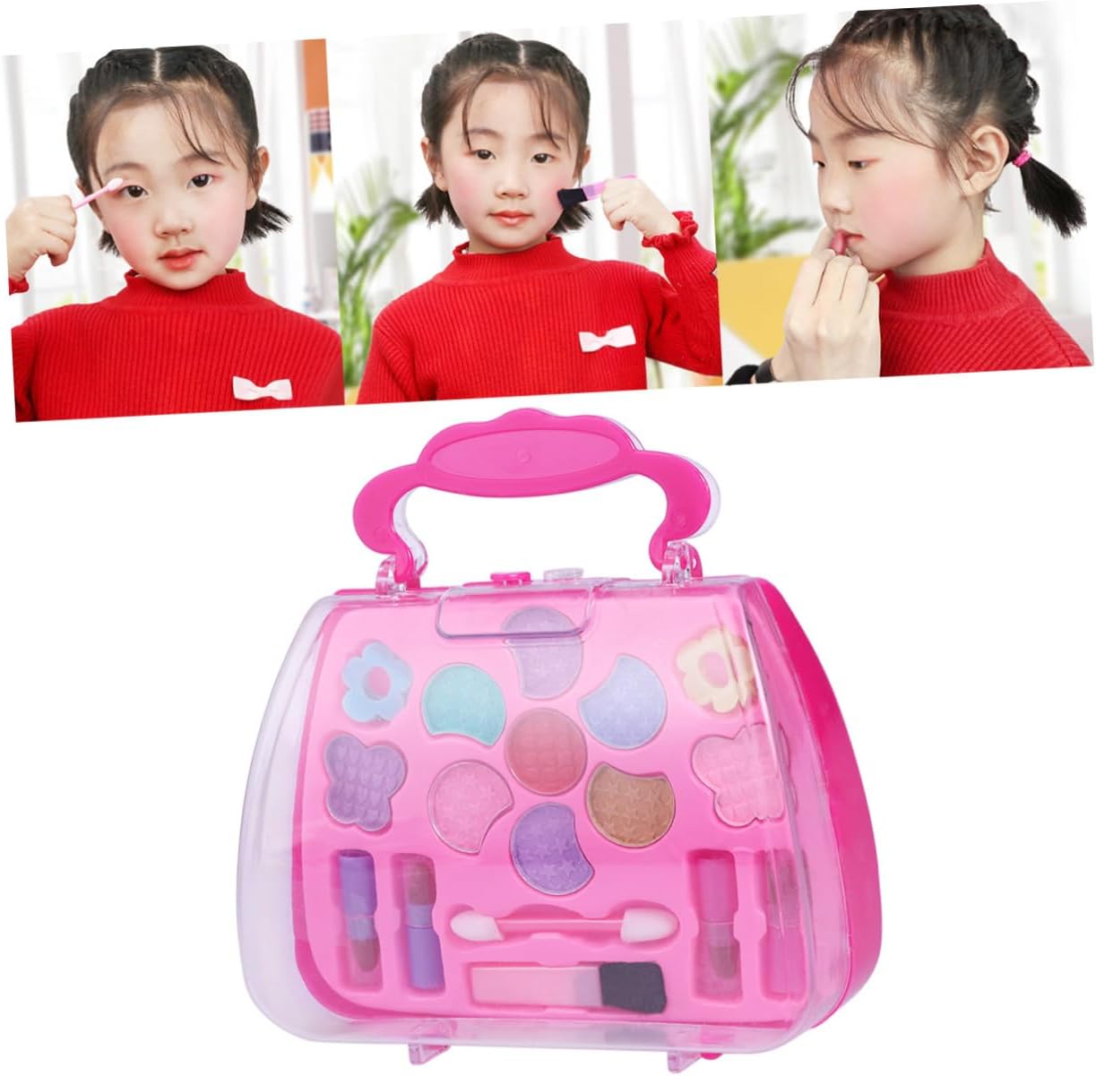 Giocattoli cosmetici per ragazze - Per le tue ragazze in occasione del compleanno, della festa dei bambini o di altri giorni speciali, custodia per il trucco per ragazze. Dress Up Makeup - Abbastanza piccolo da poter essere messo in una borsa, i bambini possono portarlo con sé in qualsiasi momento come se fosse un set per il trucco. Custodia per il trucco per bambini - Con borsa per il trasporto, facile da riporre e imballare, adatta per giocare all'asilo, a casa o per passare il tempo in macchina durante il viaggio, giocattoli per il trucco per bambini. Set trucco per bambini per ragazze - Molte opzioni di colore che terranno i bambini occupati per ore con un sacco di divertenti set per il trucco. Custodia per trucchi per ragazze - Tutti gli articoli hanno un design realistico, sono realizzati in plastica e sicuri per bambini, cosmetici.