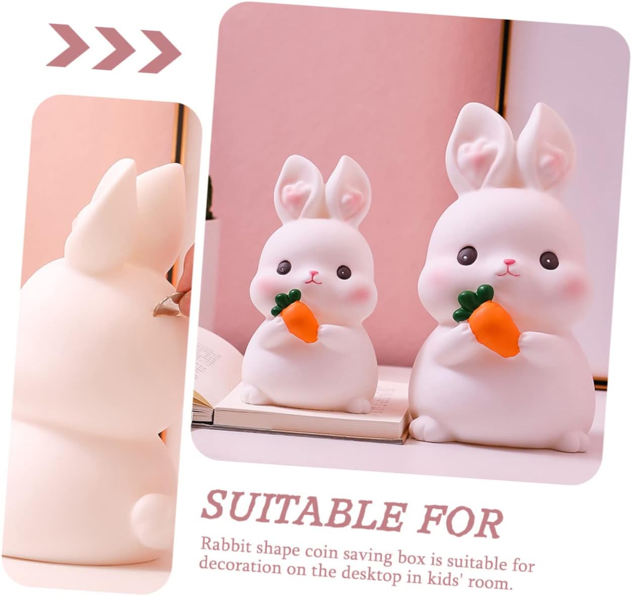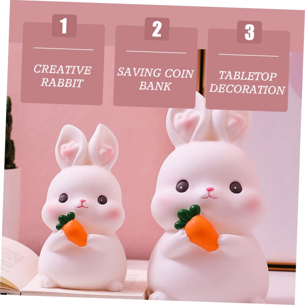 Salvadanaio per bambini: facile da pulire, la superficie non si macchia facilmente, puoi pulire la macchia con un fazzoletto, Decorazione coniglio per bambini Ha molteplici funzioni, inoltre, può anche decorare la tua scrivania, Vaso salvamonete Ornamento cartone animato: È un piacere insegnare al tuo piccolo il valore del risparmio e se ne innamorerà, Salvadanaio modello coniglio: adorabile, puoi regalarlo ai tuoi amici e familiari, adoreranno questo simpatico portamonete per bambini a forma di coniglio: presenta un design a forma di coniglio, squisito e delicato, che è un desktop ornamento, un delizioso barattolo salvifico