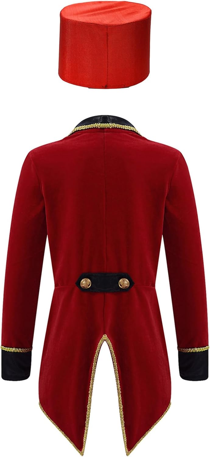 Imposta include : 1 pezzo di cappotto da smoking per ragazze, 1 pezzo di cappello Condizione : Nuovo con cartellino Materiale : 85% velluto, 10% raso, 5% metallo Etichetta No.---|---Dimensione Consigliata---|-----Lunghezza----|-----Torace-----|------Vita------|---Lunghezza delle maniche ------4---------|----------3-4 anni----------|---14.5"/37.5cm---|---23.5"/60cm---|---20.5"/52cm---|----------14"/36.5cm------ ------6---------|----------5-6 anni----------|----16"/41.5cm----|----25"/64cm----|----22"/56cm----|---------15.5"/39.5cm----- ------8---------|----------7-8 anni----------|---17.5"/45.5cm---|----27"/69cm----|----24"/61cm----|----------17"/43.5cm------ ------10--------|----------9-10 anni---------|---19.5"/49.5cm---|----29"/74cm----|----26"/66cm----|----------18.5"/47cm------ ------12--------|---------11-12 anni---------|----21"/53.5cm----|----31"/79cm----|----28"/71cm----|---------19.5"/50.5cm----- ------14--------|---------13-14 anni---------|---22.5"/57.5cm---|----33"/84cm----|---29.5"/76cm---|-----------21"/54cm------- ------16--------|---------15-16 anni---------|----24"/61.5cm----|----35"/89cm----|---31.5"/81cm---|---------22.5"/57.5cm-----