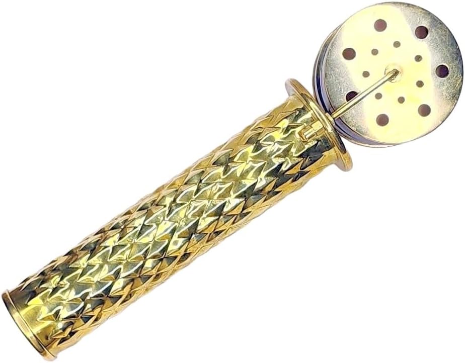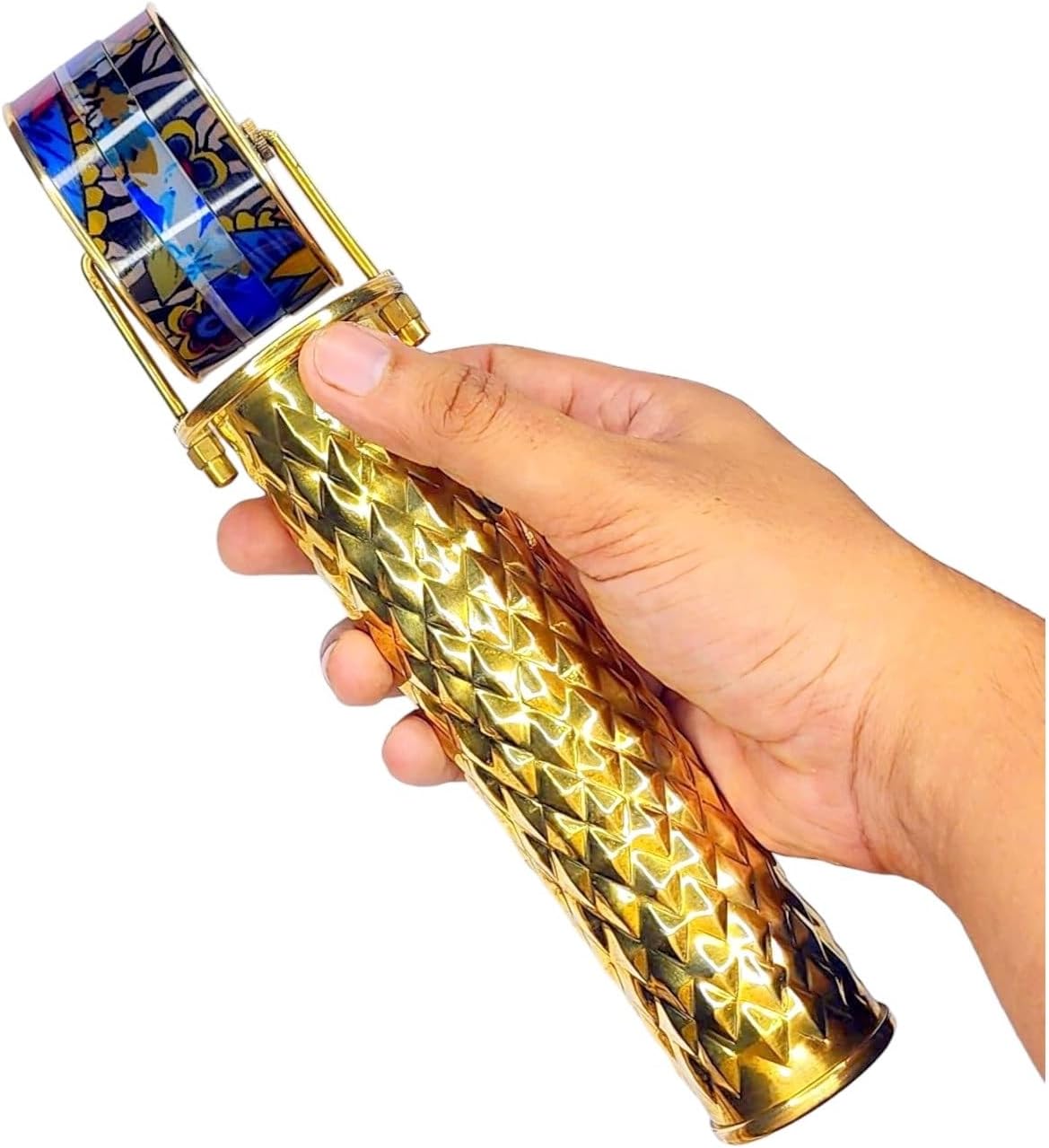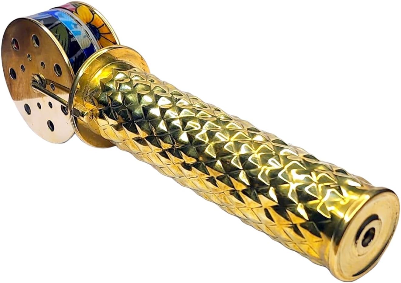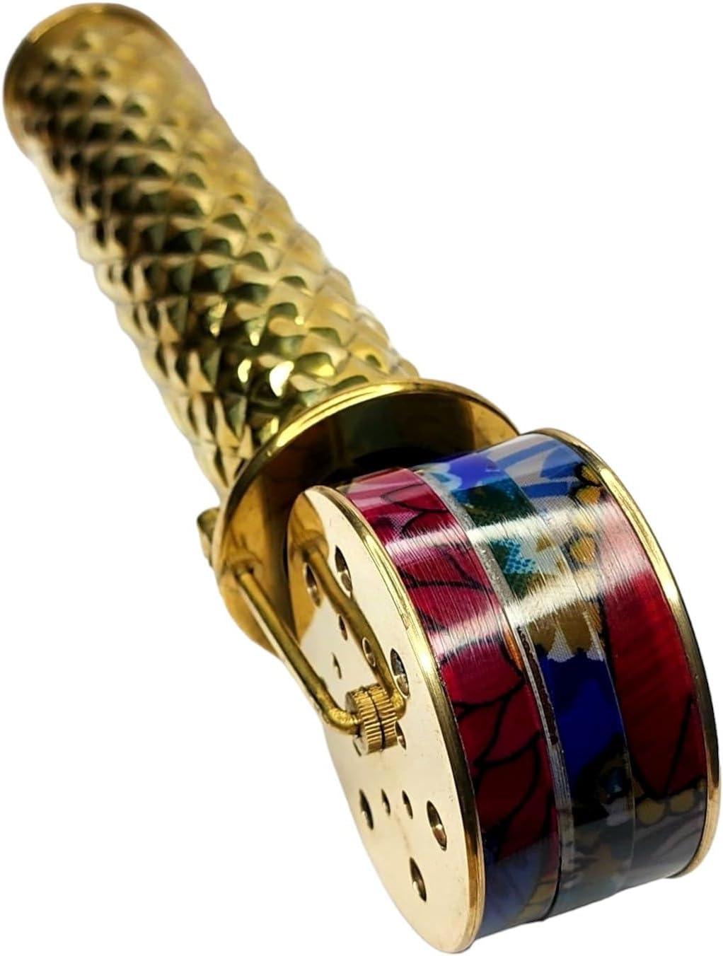 Scopri modelli affascinanti con questo elegante caleidoscopio in ottone con tre ruote uniche, ognuna aggiunge il proprio fascino al display visivo Scopri la perfetta miscela di arte e ingegneria con questo caleidoscopio in ottone, dove tre ruote sincronizzate creano un'armoniosa danza di luce e colore Illumina il tuo mondo con la bellezza radiosa di questo caleidoscopio in ottone, dotato di tre ruote che lavorano insieme per creare uno straordinario triplice incantesimo visivo. Le dimensioni di questo caleidoscopio sono 24,1 x 6,9 x 5,1 cm, realizzato in ottone