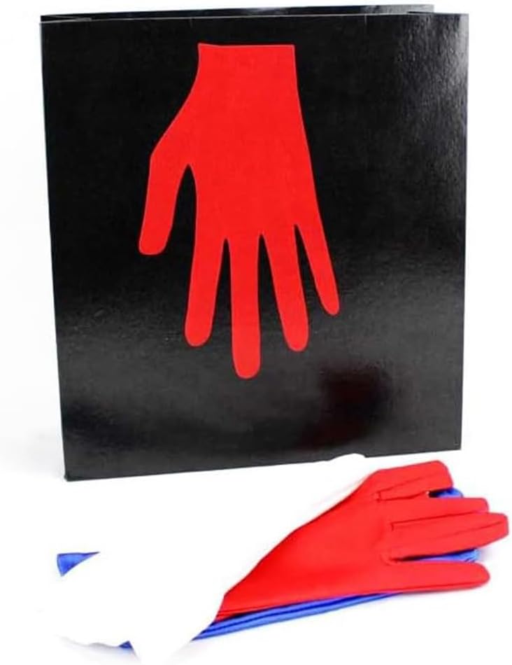 Un cambio rapido multiplo con i guanti! Il mago mostra entrambe le mani con guanti blu e una borsa con sopra una mano rossa. Caratteristiche: Scomparsa, Apprendimento, Facile da eseguire, Principianti, Mago, Strada, Palcoscenico Gli oggetti di scena sono pieghevoli e portatili. Si ripiega, funziona alla grande!!