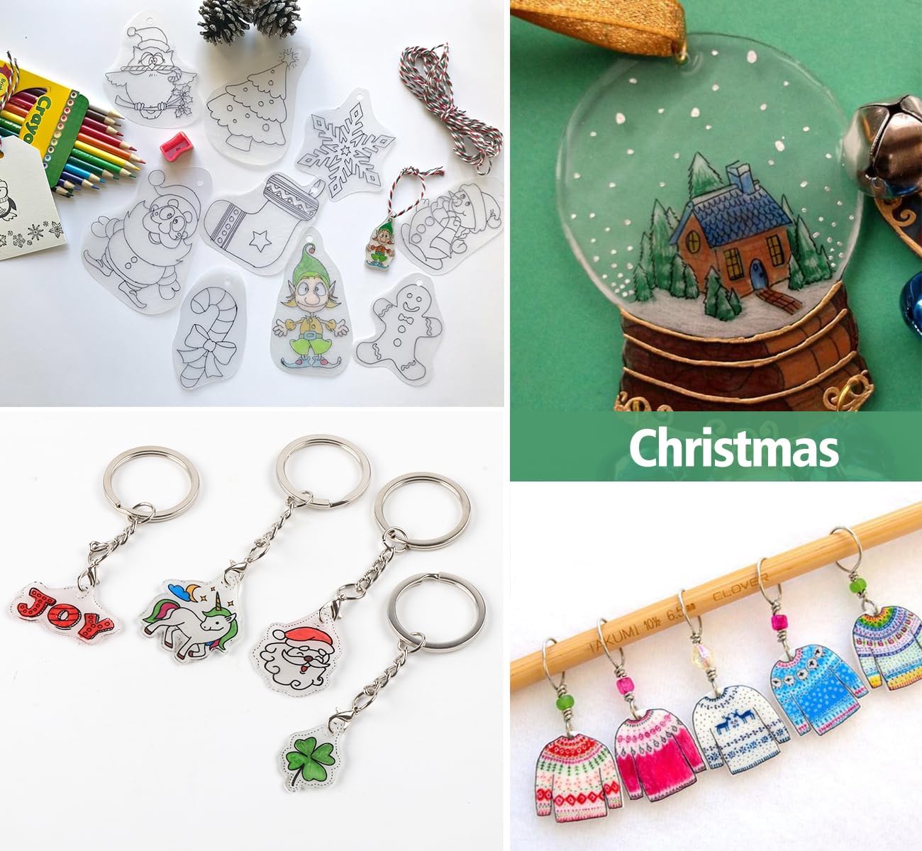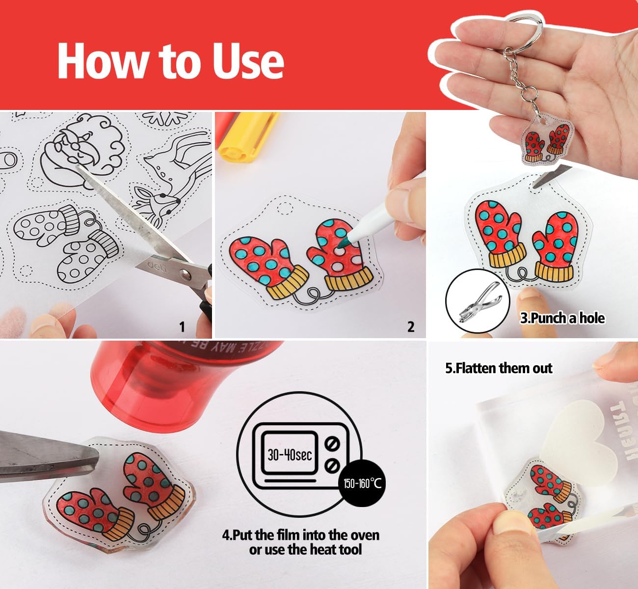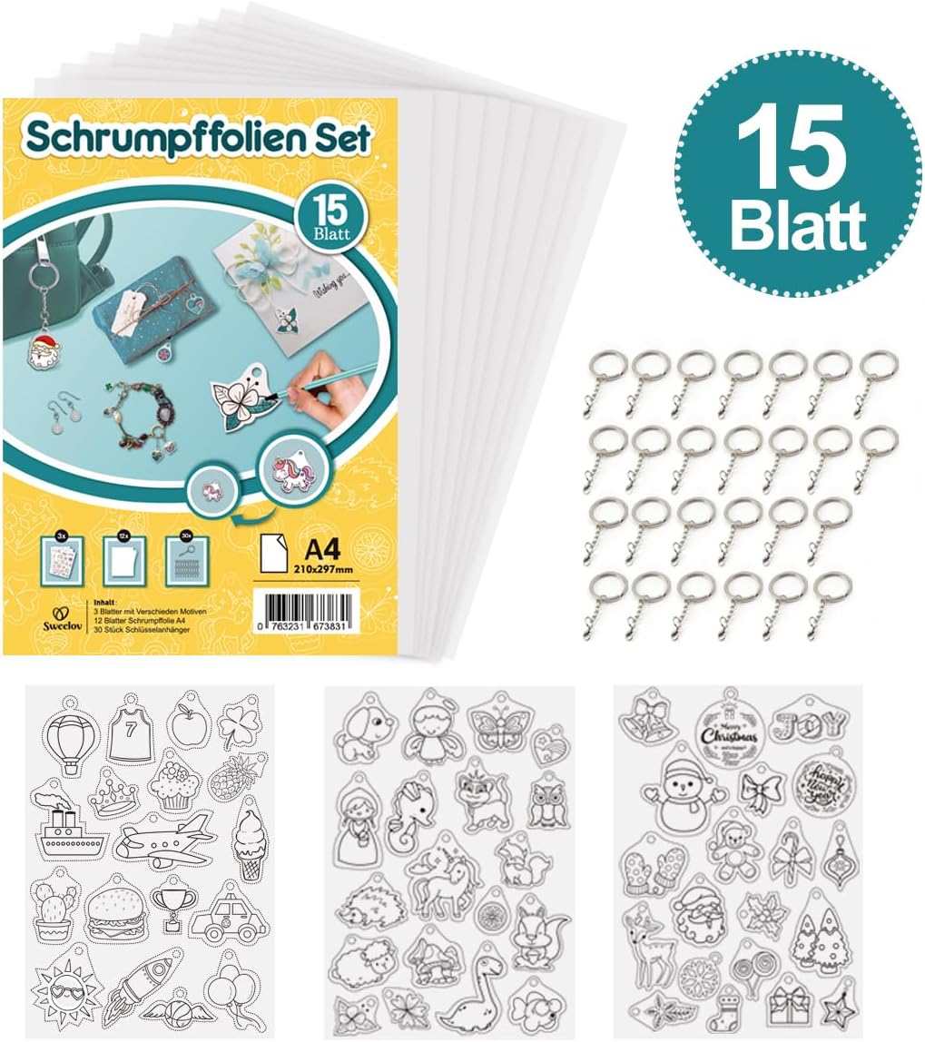 Express Creativity with Funfulland Kit completo per il bricolage: Include materiali e strumenti completi per i principianti. 15 fogli di carta termoretraibile e 30 accessori per catene. Semplice da usare: Basta disegnare e colorare la tua arte preferita, tagliarla con le forbici e si restringerà nel forno. Come i bambini creativi possono ottenere con questo kit termoretraibile in plastica: Divertiti a fare una varietà di lavori d'arte. Infiniti usi creativi di ciondoli fai da te, forcine, orecchini, portachiavi, gioielli, bottoni, etichette regalo, tira con cerniera, segnalibri e ornamenti, decorazione. Come conservare i mestieri di carta artistica Shrinky: L'applicazione di emulsione bianca o na epossidica sul lato smerigliato può impedire loro di ottenere strofinato o ottenere macchie. Divertiti con i tuoi bambini: Lasciate che i vostri bambini danno gioco completo alla loro immaginazione e creatività. Nota: questo kit è consigliato per i bambini che hanno più di 5 anni. Non toccare il pezzo termoretraibile immediatamente dopo la cottura poiché è molto caldo.