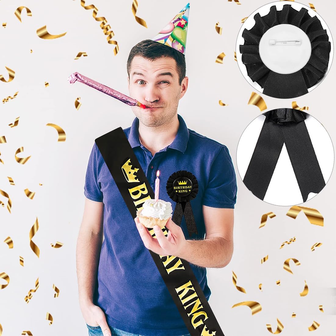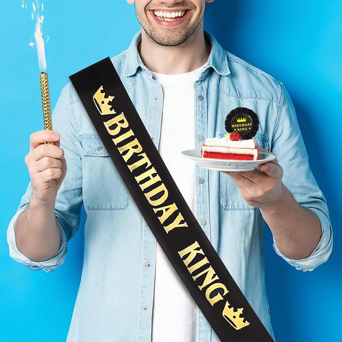 Il materiale in tessuto di alta qualità garantisce durabilità e riutilizzo, superando le alternative in plastica. La cintura regolabile assicura una vestibilità comoda ed elegante per uomini di diverse taglie di vita. Il design con monogramma "Re dell'Compleanno" attira l'attenzione, facendo risaltare il festeggiato con stile. Ideale per feste di compleanno, questo set fa un regalo perfetto per padri, figli e amici. Adatto per foto di compleanno, feste e decorazioni, creando ricordi duraturi della giornata speciale.