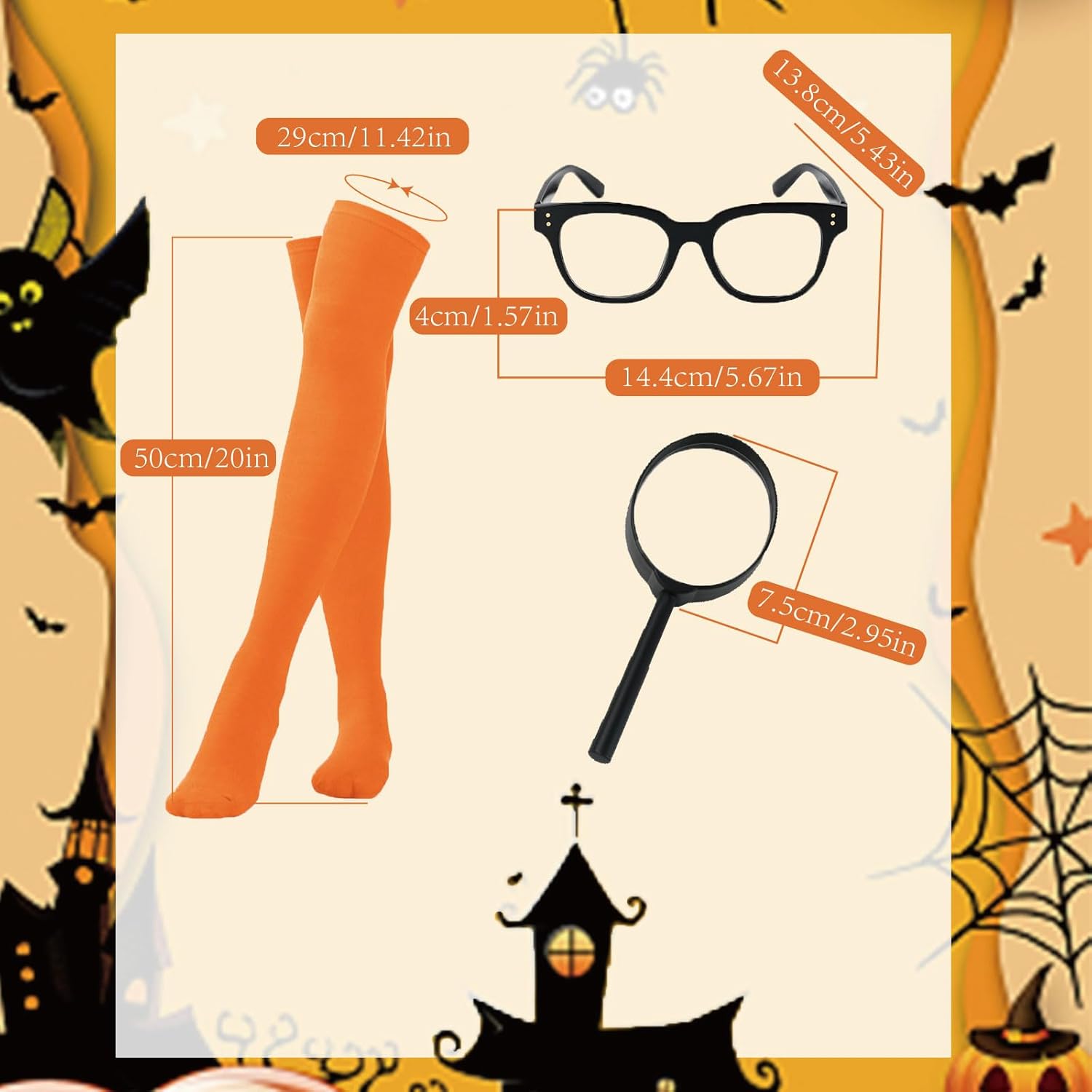 Came with two magnifying glass and no glasses. Sized up according to chart and should of kept to my normal size. Wig is very cheap.