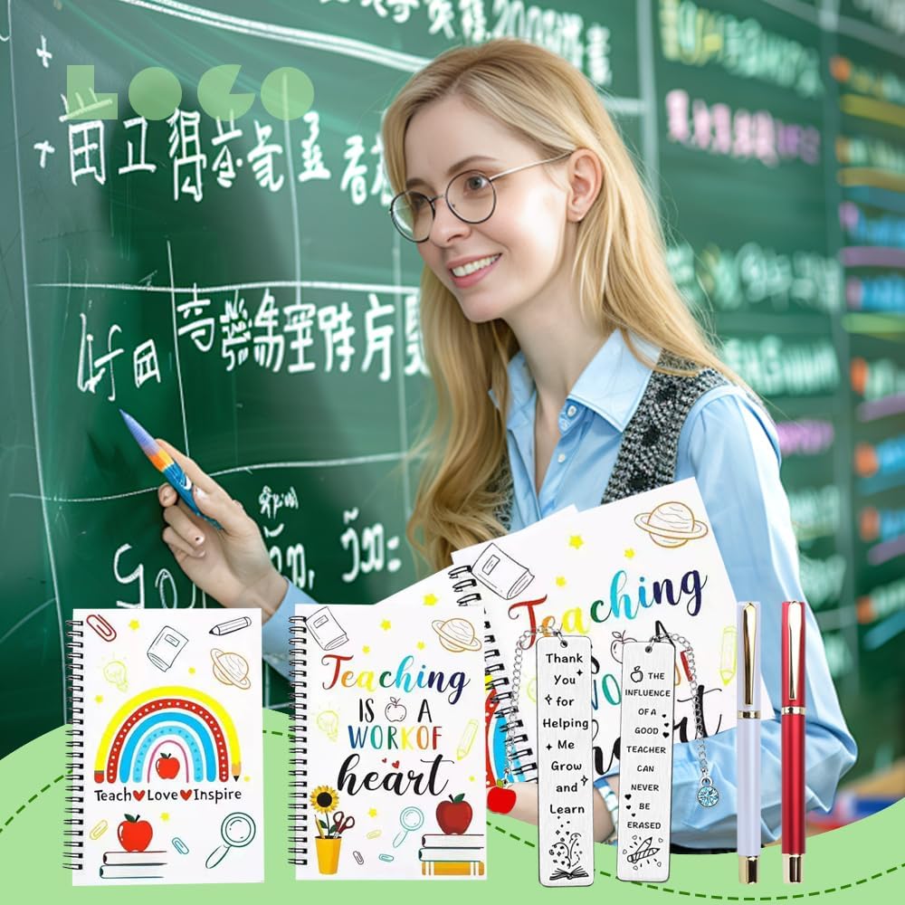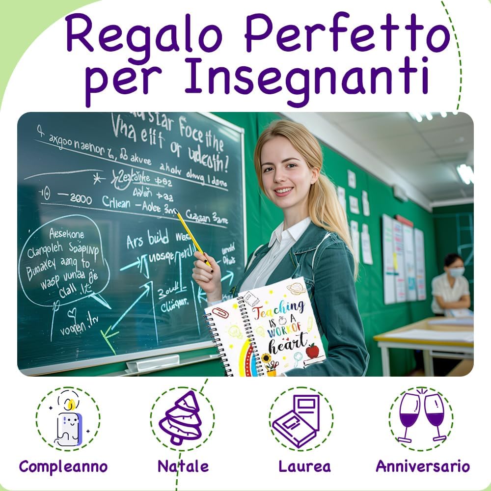 Agenda tematica per insegnanti: dagli arcobaleni alle mele alle illustrazioni divertenti, questo set di agenda crea un'atmosfera felice in classe. Ogni pagina è progettata attentamente per far sentire gli insegnanti apprezzati, riconosciuti e organizzati. Materiale di alta qualità: contiene carta da lettere liscia di alta qualità, perfettamente compatibile con le penne e i segnalibri inclusi e non sbava e non macchia. Grazie alla rilegatura sicura, è piatto e facile da scrivere. Contenuto della confezione: un quaderno a spirale A5 da 50 pagine, 2 segnalibri in metallo e 2 penne. Questo set colorato e divertente è un pratico must per il tuo ufficio! Perfetto per qualsiasi stile di insegnamento: ideale per insegnanti, consulenti, genitori che studiano in casa o personale dell'asilo nido. Il layout flessibile è adatto per la pianificazione delle lezioni, la riflessione, gli appunti valutati o l'inserimento nel diario quotidiano. Regalo commovente: che si tratti del giorno dell'insegnante, di un compleanno o dell'inizio di un nuovo anno scolastico, questo set regalo è un regalo premuroso e pratico che esprime sincera gratitudine. Può essere dato direttamente.