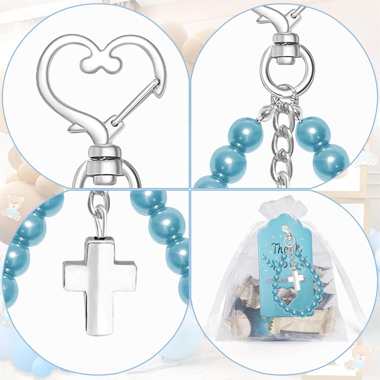 Migliora il tuo evento con il nostro set di 20 braccialetti con perline a forma di croci, presenta un bellissimo ciondolo a croce e una catena di perline, per aggiungere un tocco di eleganza a qualsiasi celebrazione religiosa. Ogni set di bomboniere è meticolosamente realizzato, tra cui croci braccialetto di perline e carte personalizzate, il tutto elegantemente confezionato in sacchetti di organza per una presentazione di lusso. Ideali per organizzatori di eventi, organizzatori di feste e persone che cercano regali significativi, questi regali per battesimi incontrano coloro che apprezzano i gesti simbolici. Per baby shower, battesimi, prime comunioni e altre cerimonie religiose, questi regali offrono un ottimo modo per ringraziare gli ospiti e commemorare eventi speciali. La confezione include: set regalo con 20 braccialetti con perline a forma di croci
