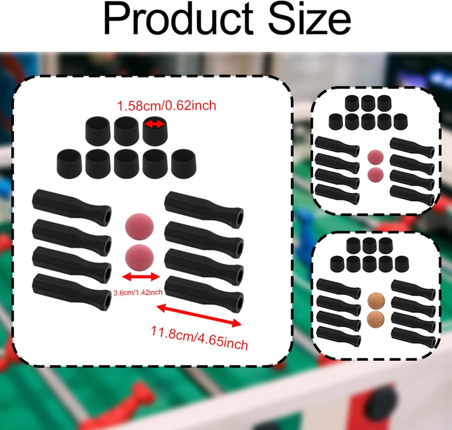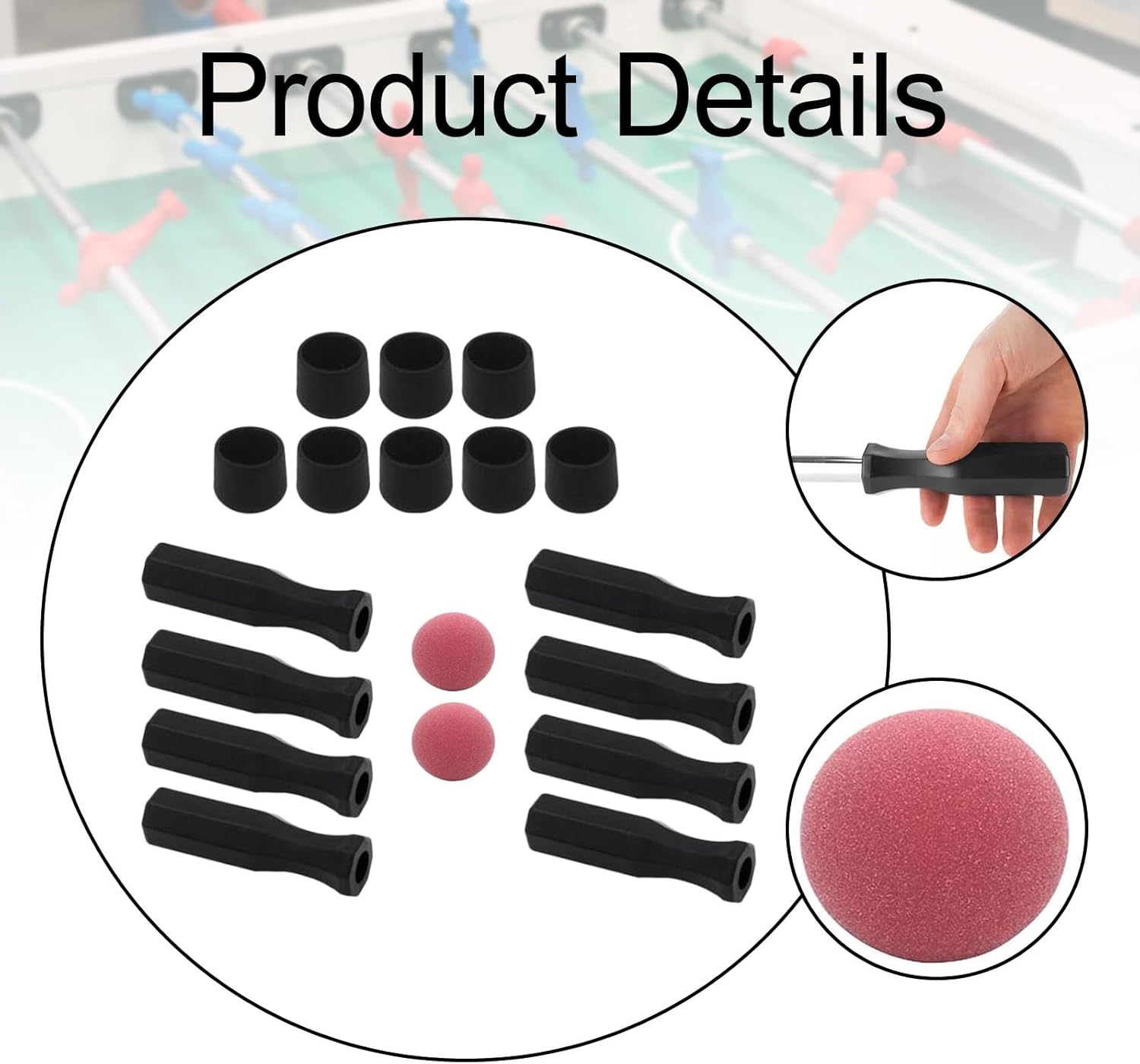【Easy Installation】: accessori per tavolini di 【Costruzione】: accessori da tavolo da calcio sono realizzati con materiali di qualità per garantire prestazioni e durabilità a lungo durante corrispondenza di 【Dimensioni】: le maniglie della tabella di calcio hanno un diametro interno di 16 mm e una lunghezza di 118 mm, mentre il tappo 'estremità 'asta della tavola di biliardo misura 15,8 mm nel diametro interno X 17,8 mm Il pallone da calcio ha un diametro di 36 mm 【Contenuto del pacchetto】: questo pacchetto include 8 manici ottagonali, 8 tappi di estremità e 2 palloni da calcio, fornendo un set completo di accessori per il tuo tavolo da palla per adulti 【Esperienza di gioco migliorata】: Aggiorna il tuo tavolo di