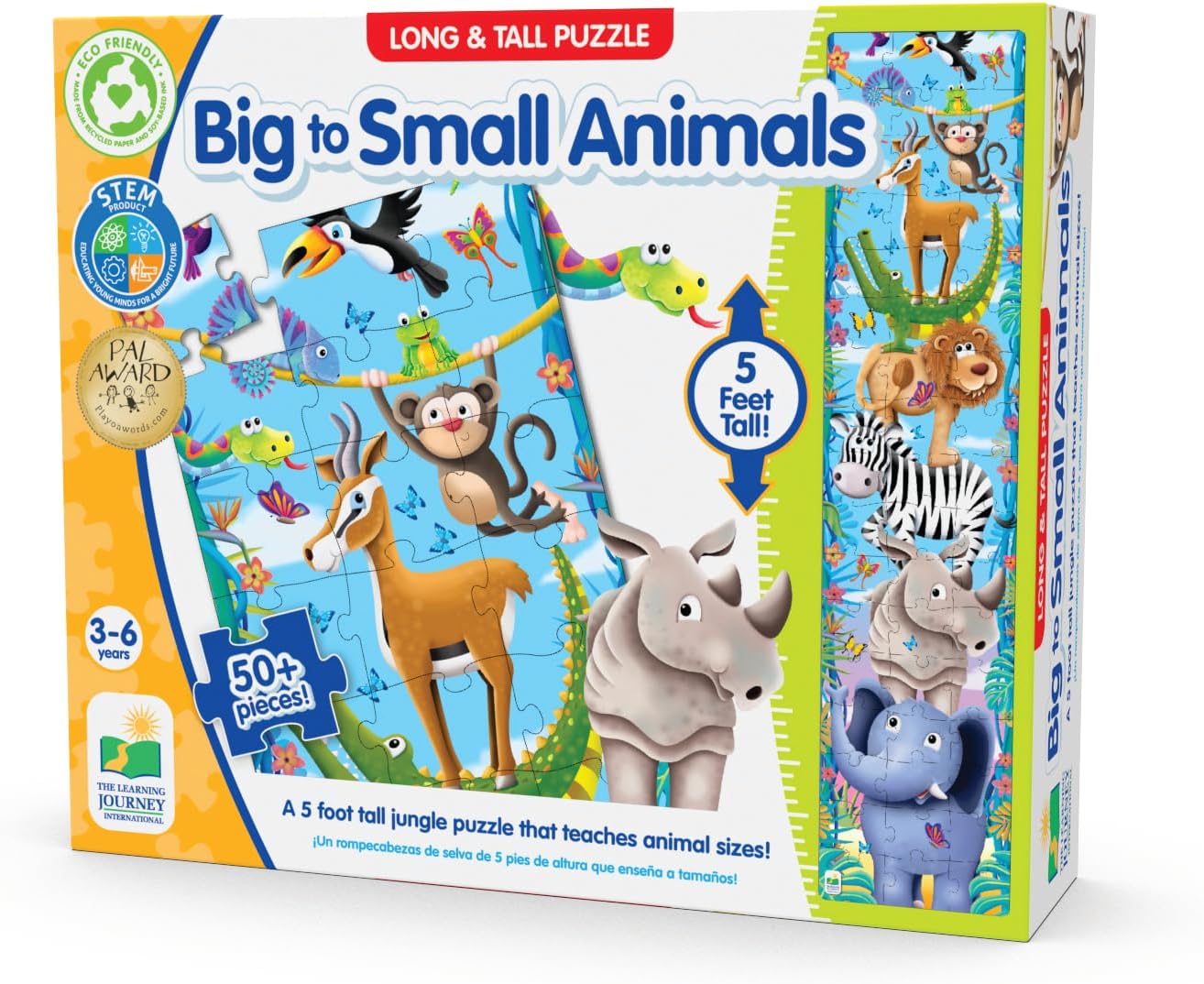 Caratteristiche principali: questo jumbo puzzle da 51 pezzi vividamente illustrato è il regalo perfetto per ragazzi e ragazze dai 3 anni in su. Progettato per rafforzare la risoluzione dei problemi e promuovere le prime abilità linguistiche e di apprendimento, questo puzzle a tema animali da safari è divertente da imparare attraverso il gioco! Le specifiche: 51 pezzi di puzzle jumbo realizzati in cartone spesso e resistente. Il puzzle finito misura 60" x 13,5". Vantaggi educativi: sviluppa capacità tattili, motorie, di pensiero e di apprendimento. Rafforza il riconoscimento del colore, della forma e dell'oggetto. Costruisce fiducia e aumenta l'autostima fornendo un senso di realizzazione. Familiarizza i bambini con il mondo che li circonda Supporta le capacità di sviluppo: allena le capacità motorie e la coordinazione occhio-mano incoraggiando il bambino ad assemblare i pezzi corretti del puzzle. Rafforza le capacità cognitive ispirando tuo figlio a concentrarsi e risolvere i problemi. Incoraggia il gioco sensoriale visivo e tattile. Testa la consapevolezza spaziale e crea un'opportunità per lo sviluppo di abilità sociali attraverso il gioco Sicurezza - Tutti i prodotti Learning Journey sono regolarmente testati per la sicurezza e sono conformi a tutte le normative nazionali e internazionali sulla sicurezza dei giocattoli Prodotti pluripremiati - Fatto divertente: The Learning Journey ha una vasta gamma di giocattoli educativi pluripremiati che sono stati testati dalla giuria principale di bambini!