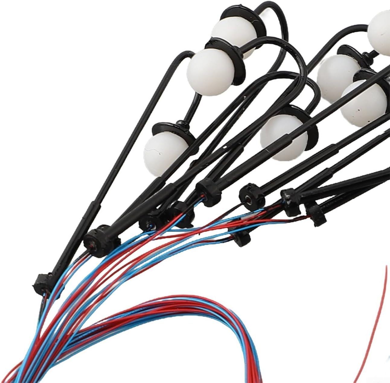【Luci a LED ad alta efficienza energetica】 Le lampade del modello del treno sono dotate di LED bianchi che consumano e forniscono una soluzione di illuminazione ad alta efficienza energetica. 【Installazione semplice】Completi di cavi e LED, questi lampioni possono essere facilmente installati nel tuo plastico ferroviario. Compatibilità del resistore: per garantire il corretto funzionamento, ricordarsi di collegare un resistore in serie prima di utilizzare le luci con fonti di alimentazione da 12 V o 16 V. Offriamo resistori compatibili per . Molteplici usi: adatti per modelli in scala HO e N, questi lampioni a testa rotonda possono essere utilizzati per migliorare il realismo del layout del tuo modello. Questi lampioni neri sono realizzati con modelli con pilastri in rame e sono progettati per resistere all'uso continuo e fornire un'illuminazione di lunga durata.