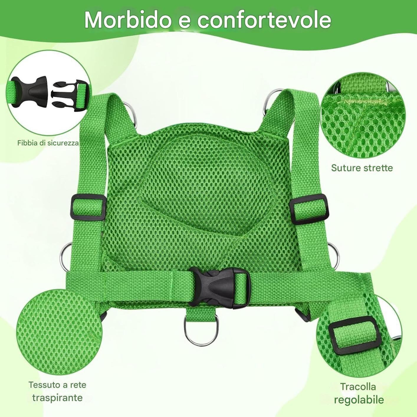 Design Compatto: Struttura efficiente e spazio ridotto che semplifica riporlo e trasportarlo, scelta ideale per famiglie in viaggio o commissioni quotidiane Protezione Esterna: Cavo in acciaio rinforzato e design antiurto integrati con fasce rifrangenti migliorano la visibilità crepuscolare, offrendo supporto affidabile ai genitori in aree affollate Guinzaglio Removibile: Guinzaglio di sicurezza staccabile per utilizzo flessibile e funzionalità adattabile scenario, garantendo integrazione sicura con l'imbracatura di supporto per la protezione del bambino durante attività all'aperto Motivo giocoso:Con il suo dinosauro 3D e anello rotante, stimola la fantasia e l'interazione durante le passeggiate, assicurando sicurezza e divertimento per il bambino. Comfort Bambino: Distribuzione ergonomica della pressione unita a tessuto traspirante assorbi-umidità, assicura vestibilità aderente ma respirante per piccoli esploratori