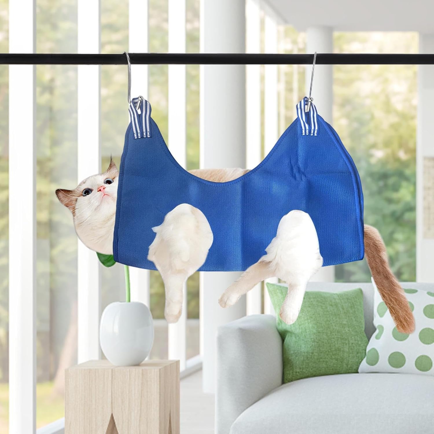 Materiale per il relax definitivo: fai sentire i tuoi amici felini a proprio agio e rilassati nelle nostre amache per la toelettatura dei cani. Il nostro cotone poliestere morbido e traspirante garantisce una buona circolazione dell'aria, previene l'effetto soffocante e mantiene i tuoi animali domestici a proprio agio. Opzioni di dimensioni multiple: realizzato in cotone poliestere, è abbastanza resistente da resistere a graffi e morsi. Trova la misura perfetta per il tuo gatto con taglie per animali domestici di piccola, media e grande taglia. Applicazione versatile: questa amaca per la toelettatura del cane è una meraviglia multifunzionale. Questa versatile amaca può essere fissata a qualsiasi superficie, rendendola perfetta per l'uso su finestre, gabbie, sedie o sedili per auto. DESIGN CONVENIENTE: la nostra amaca per la toelettatura del cane offre al tuo gatto un posto accogliente dove rilassarsi mentre sei in movimento. La sua struttura leggera lo rende facile da riporre e trasportare, garantendo al tuo animale domestico un posto confortevole dove rilassarsi, ovunque tu sia. Progettate per la sicurezza: migliora il tempo di sonno del tuo gatto con le nostre amache per la toelettatura dei cani sicure e robuste. Ogni amaca è realizzata con cura con materiali solidi e resistenti che non si rompono né sbiadiscono nel tempo, garantendo un uso duraturo per il tuo animale domestico.
