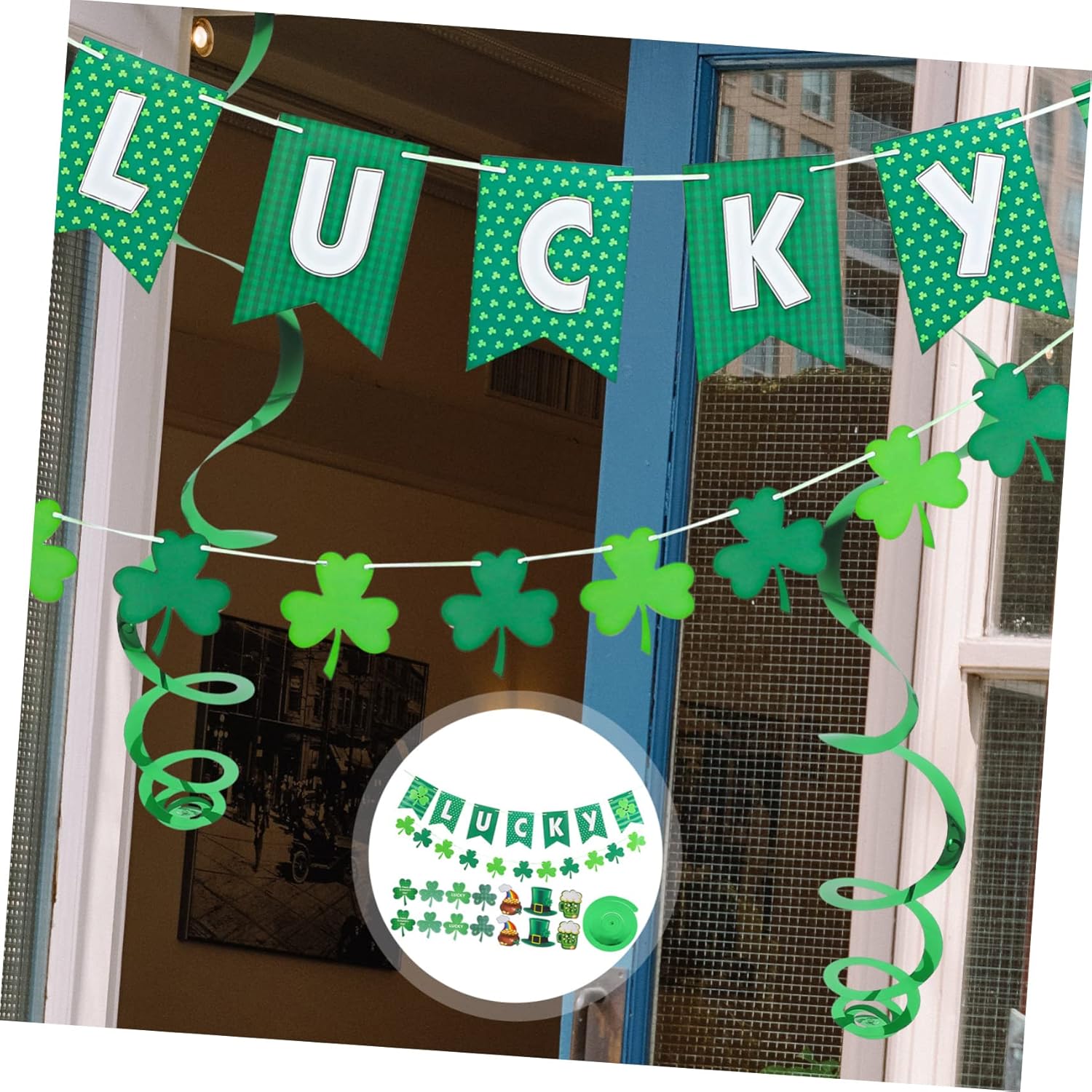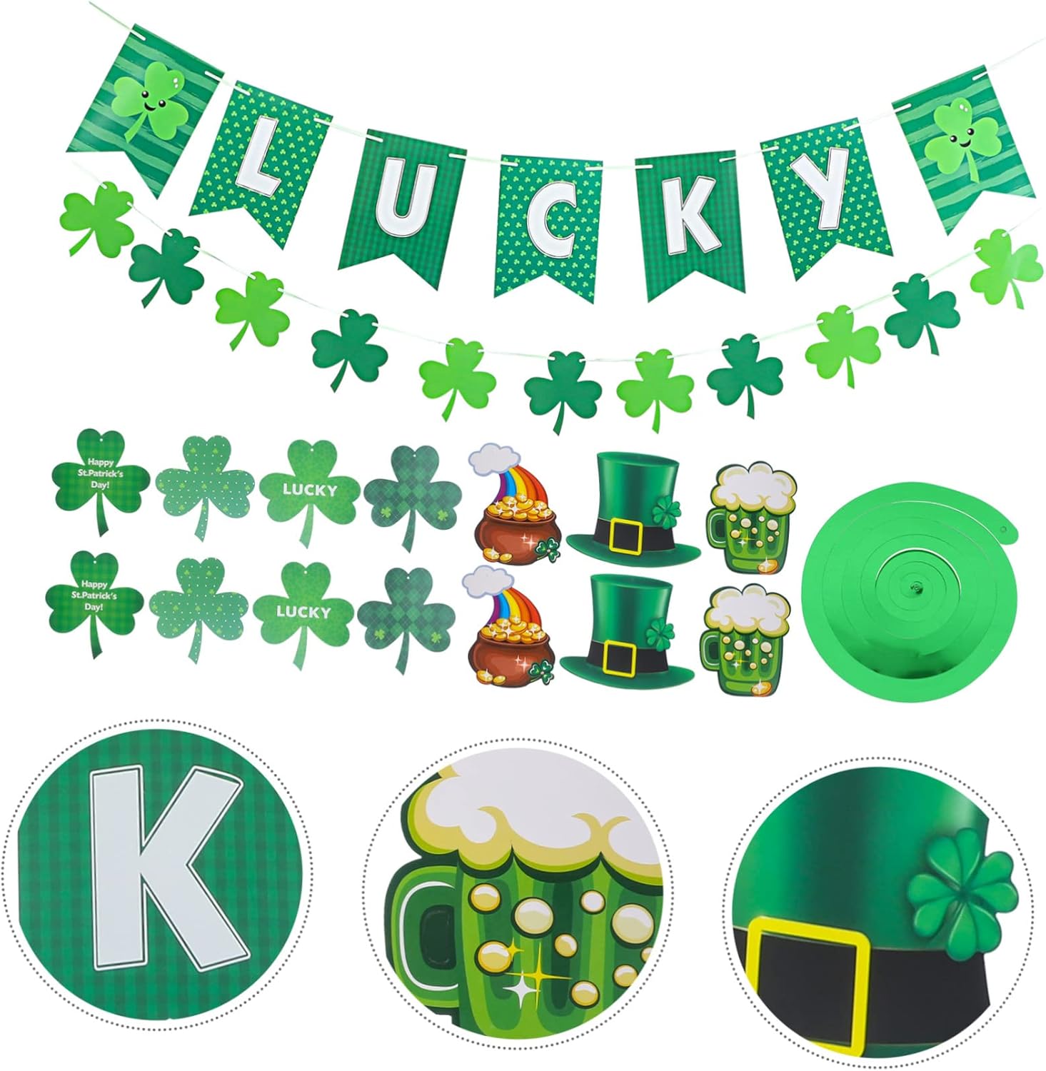 Impiccagioni per il giorno di San Patrizio: alcuni di loro nel giorno di San Patrizio. La scena della festa di San Patrizio, gli striscioni e le spirali possono evidenziare il tema e aggiungere atmosfera. La festa disegna la bandiera: st. Striscione di carta per il giorno di San Patrizio: queste decorazioni di carta da appendere per l'artigianato sono leggere, piccole e pratiche, facili da trasportare e spostare. Decorazione da appendere: queste decorazioni da appendere in carta per l'artigianato sono leggere, piccole e pratiche, facili da trasportare e spostare. Ghirlanda: ricchi turbinii e striscioni sospesi per la decorazione della festa di San Patrizio, soddisfa facilmente le tue diverse esigenze. Banner trifoglio: può essere appeso al muro, alla porta, alla finestra o attaccato al soffitto per decorare la festa.