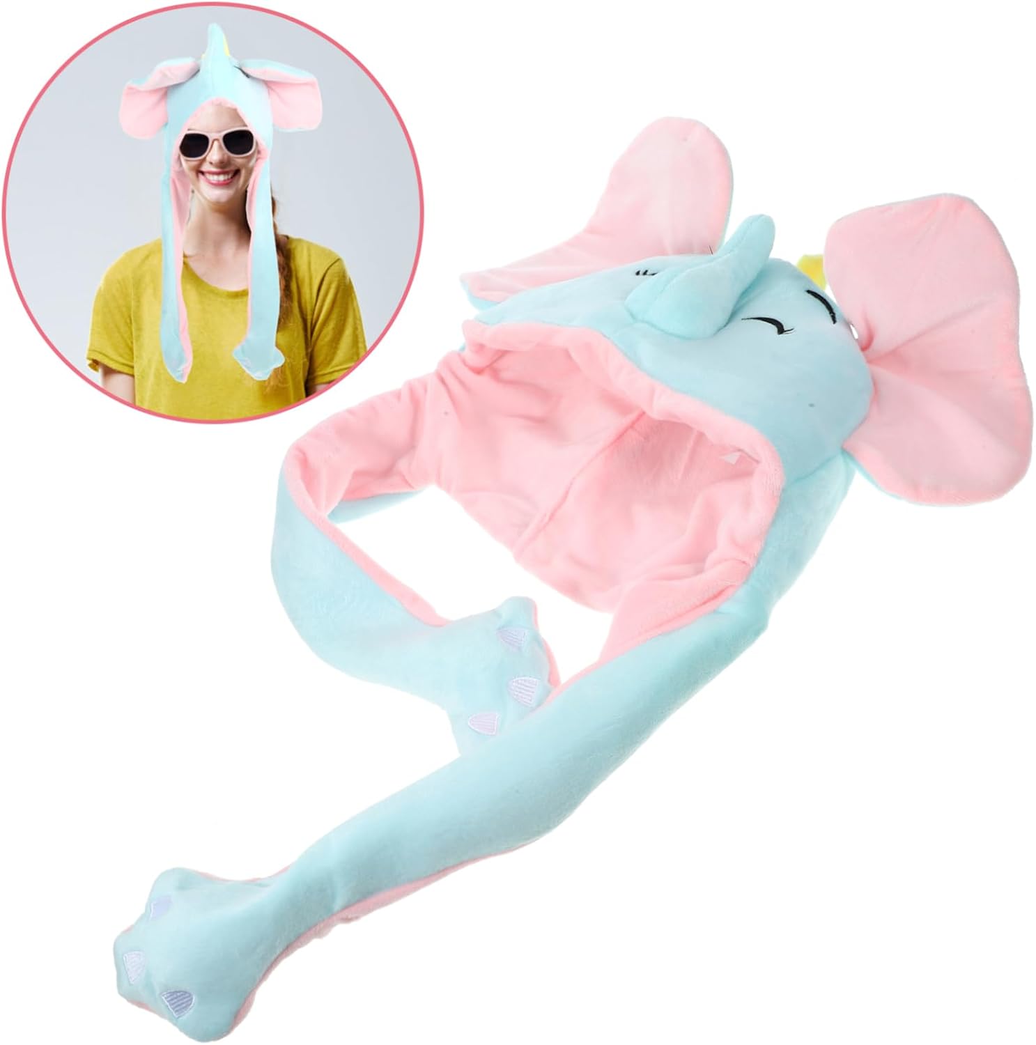 dei pacchetti 1 x cappello con orecchio mobile Caratteristiche -Dimensioni: 52,00X33,00X20,00cm/20,44X12,97X7,86 pollici copricapo divertente -Colore: Cappello multicolore con orecchie mobili -Materiale: peluche, cappello da festa a forma di elefante in cotone PP -Informazioni sul prodotto: Cappello a forma di testa di elefante -Taglia: adatta per circonferenza della testa: entro 59 cm Copricapo a forma di elefante - Il materiale è sicuro e leggero, resistente all'usura e pratico per l'uso prolungato del copricapo a forma di elefante. - Realizzato in morbido peluche e materiale di cotone PP, garantendo un'esperienza di utilizzo confortevole con questo cappello da cartone animato. cappello da cartone animato - Questo cappello da cartone animato può creare un'atmosfera più e attiva per il tuo festival o la tua festa se lo indossi come accessorio. - Questo cappello di peluche a forma di cartone animato può essere utilizzato come accessorio alla moda che aggiunge un tocco di tenerezza a qualsiasi outfit. - Cappello da perfetto per feste, riunioni di famiglia ed eventi speciali, che aggiunge un tocco di divertimento all'atmosfera. Descrizione della merce Cappello da cartone animato: vuoi una decorazione accattivante per un selfie? Trova l'accessorio giusto! Questo cappello da cartone animato è progettato per aggiungere allegria alle tue feste e alla tua vita. Cappello con orecchie mobili. Un copricapo adorabile e caldo, adatto per il freddo inverno, lezioni di danza, accessori per foto, divertente, ecc.