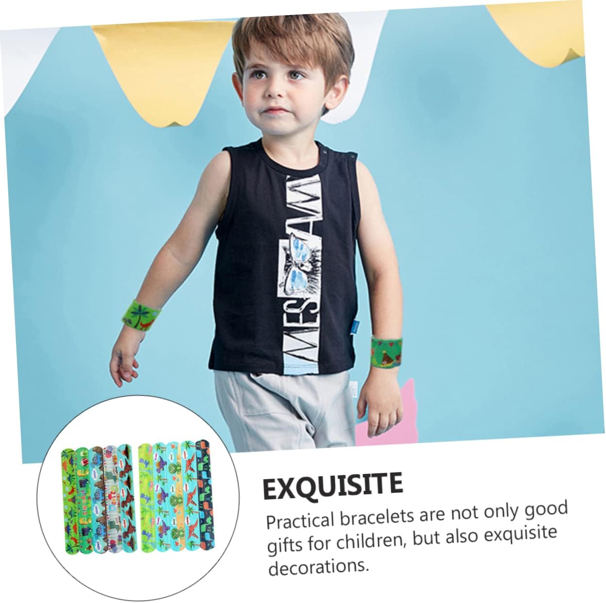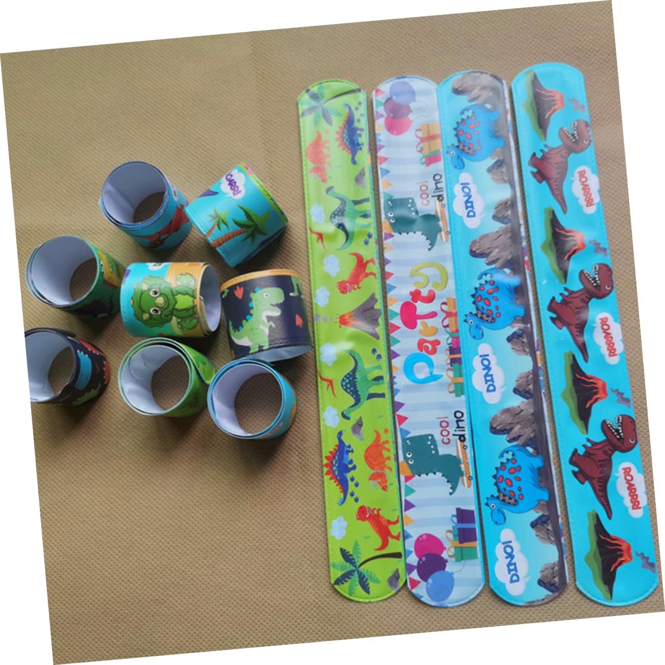 Giocattoli per feste - con funzioni pratiche, possono essere usati come braccialetto decorativo per bambini o braccialetto per orologio per bambini, braccialetti per feste Oggetti di scena per feste: il braccialetto a schiaffo è realizzato con squisita fattura, con un aspetto elegante e raffinato e un tocco morbido e confortevole, braccialetti a schiaffo per feste Braccialetti pratici: un modo semplice e divertente di vestirsi, può conquistare l'amore dei bambini. I modelli dei dinosauri dei cartoni animati sono più popolari tra i bambini, i braccialetti a schiaffo dei dinosauri dei cartoni animati Interessanti braccialetti a schiaffo: puoi acquistare questo set di braccialetti a schiaffo creativi e interessanti presso un braccialetto leggero Bomboniere: il design del prodotto è unico e la stampa del dinosauro è semplice e interessante. È un giocattolo per bambini, braccialetti schiaffo
