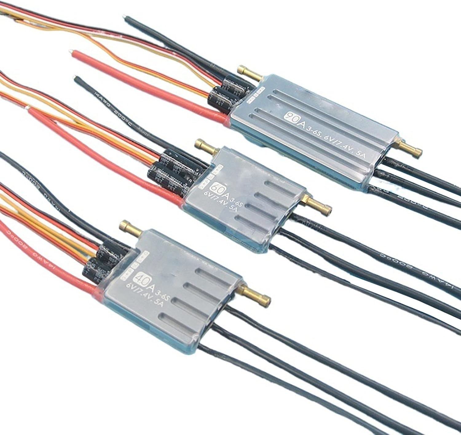 Disponibile da 40 A a 180 A for diverse configurazioni di potenza Design leggero e compatto ideale for barche RC da competizione Completamente impermeabile con raffreddamento ad acqua integrato for la gestione del calore ESC brushless bidirezionale con risposta dell'acceleratore programmabile Accelerazione fluida e controllo preciso della velocità for prestazioni da corsa