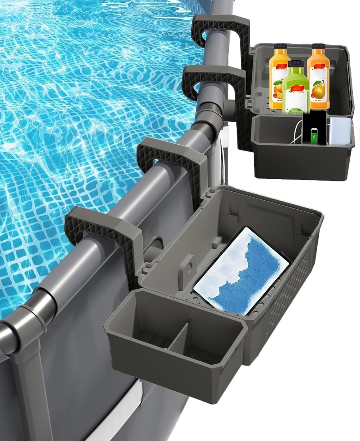 Design per adattarsi perfettamente alla maggior parte delle piscine con telai a terra, comprese quelle con tubi rotondi, ovali o rettangolari. Grande capacità: con un design spazioso, questo cestino offre spazio sufficiente per giocattoli da piscina, asciugamani, bevande e telefoni. I suoi scomparti e sezioni aiutano a mantenere gli oggetti organizzati e il gancio extra offre ulteriore spazio. Impedisce l'inclinazione e mantiene i tuoi oggetti asciutti e a portata di mano, soprattutto quando il bordo piscina è bagnato. La confezione include: 1 contenitore a bordo piscina
