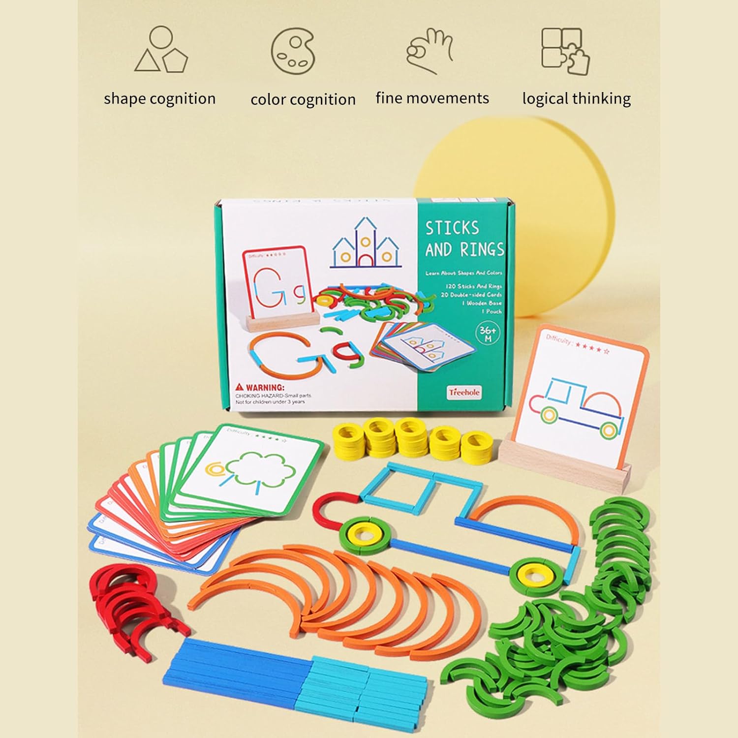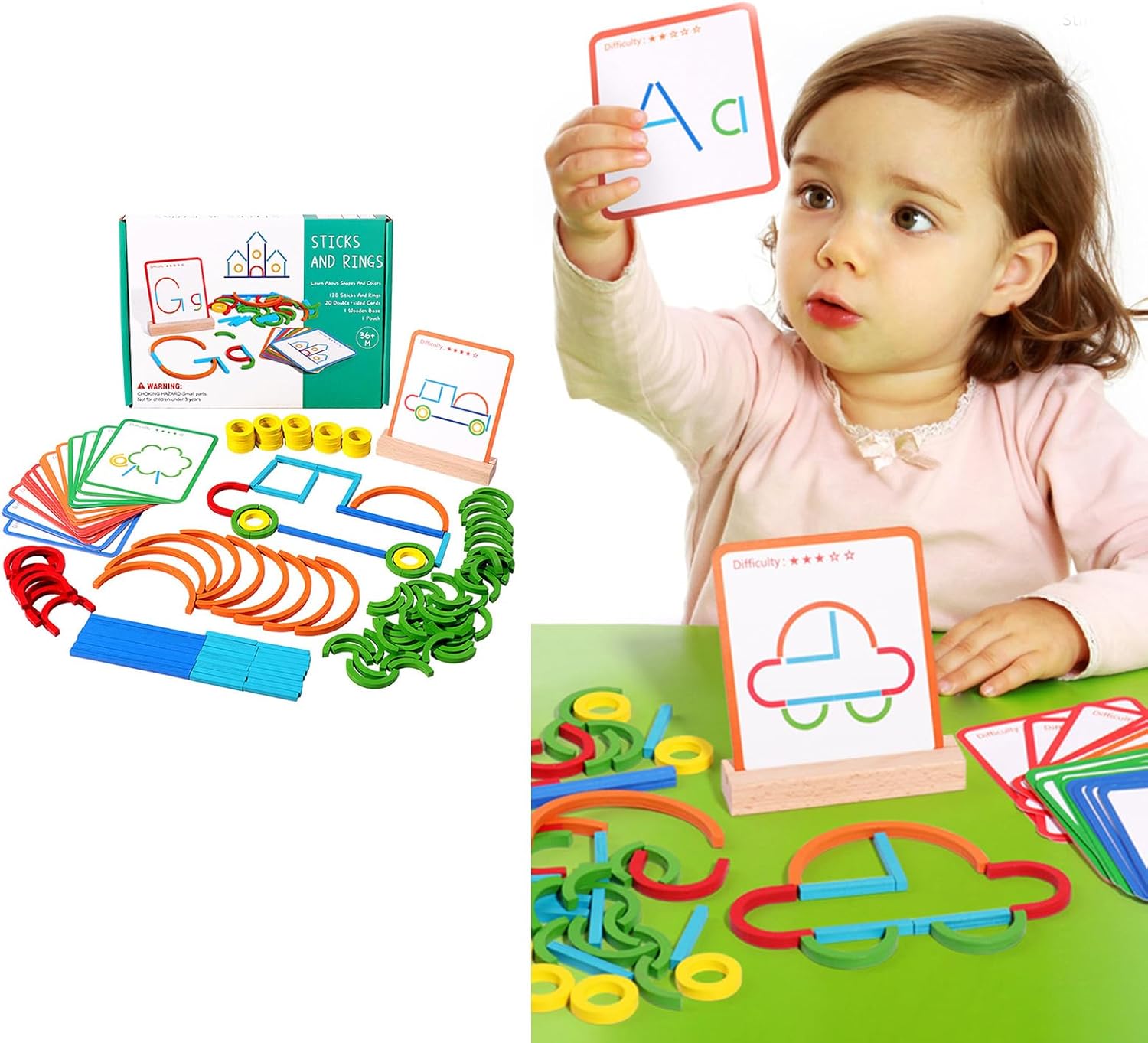 legno liscio e non tossico con vernice a base d'acqua, giocattolo a blocchi educativi offre un uso longlasting garantendo contempo gioco sicuro per bambini Ottimo per bambini in età prescolare, genitori educatori che cercano strumenti apprendimento STEM interattivo che combinano riconoscimento del colore, la formazione forma e conteggio della pratica attraverso la manipolazione mani sulla manipolazione Perfetto per la classe domestica, l'attività asilo o l'intrattenimento viaggio, incluso la carta gioco per vari livelli difficoltà gioco per i bambini che radunano giocando Migliorare lo sviluppo della prima infanzia con questo set blocchi puzzle in legno presentava e bastoncini creativi che stimolano ragionamento dello spazio e pensiero logico astratto nei bambini Con molteplici possibilità, questo set puzzle costruzioni aperti incoraggia la creazione pattern, lo sviluppo delle competenze motorie e la risoluzione dei problemi figlio collaborativa del figlio