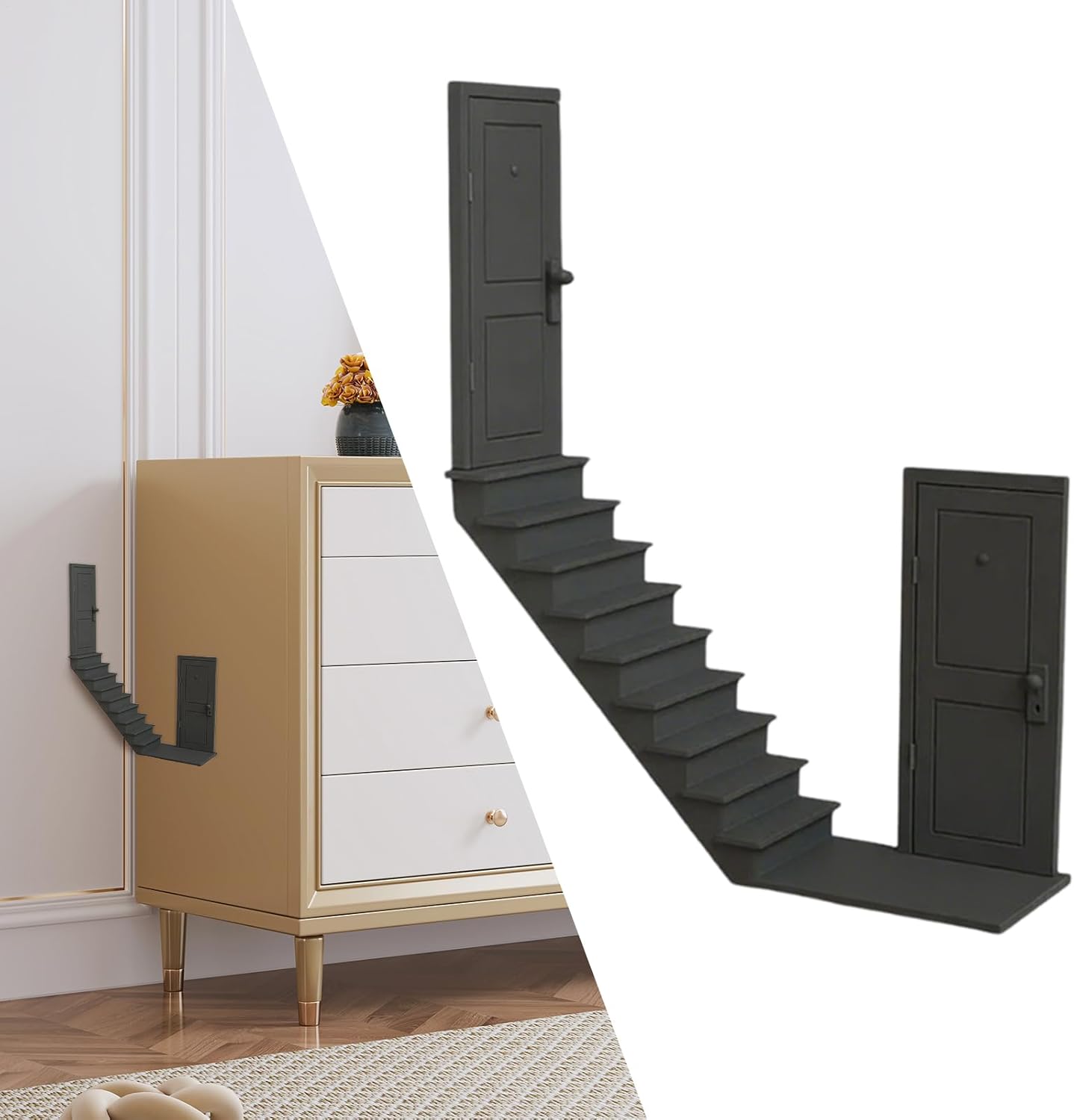 Punto focale artistico: aggiunge un effetto decorativo con un innovativo design di illusione visiva, rendendolo ideale per la decorazione moderna della casa, migliorando l'atmosfera generale degli spazi contemporanei senza sforzo Squisita fattura: la pregevole fattura garantisce la creazione di una struttura a scala chiara e visibile, completata da dettagli intricati portati alla vita utilizzando moderne tecniche di stampa 3D Molteplici applicazioni: questo set di scale in miniatura funge da pezzo decorativo ampiamente utilizzato, ideale per la decorazione di librerie e la creazione di piccoli layout paesaggistici, aggiungendo eleganza agli angoli con il suo design che si fonde perfettamente in diverse impostazioni Facile da usare: senza installazione complicata, queste scale in miniatura offrono una soluzione facile da usare che può essere spostata e posizionata senza sforzo; progettate per semplificare le attività quotidiane, offrono prestazioni costanti e adattabilità in diversi ambienti senza sforzo extra Meraviglioso regalo: sorprendi la tua famiglia e gli amici presentando scale in miniatura durante le vacanze o i compleanni, un gesto significativo che aggiunge gioia alle loro occasioni memorabili