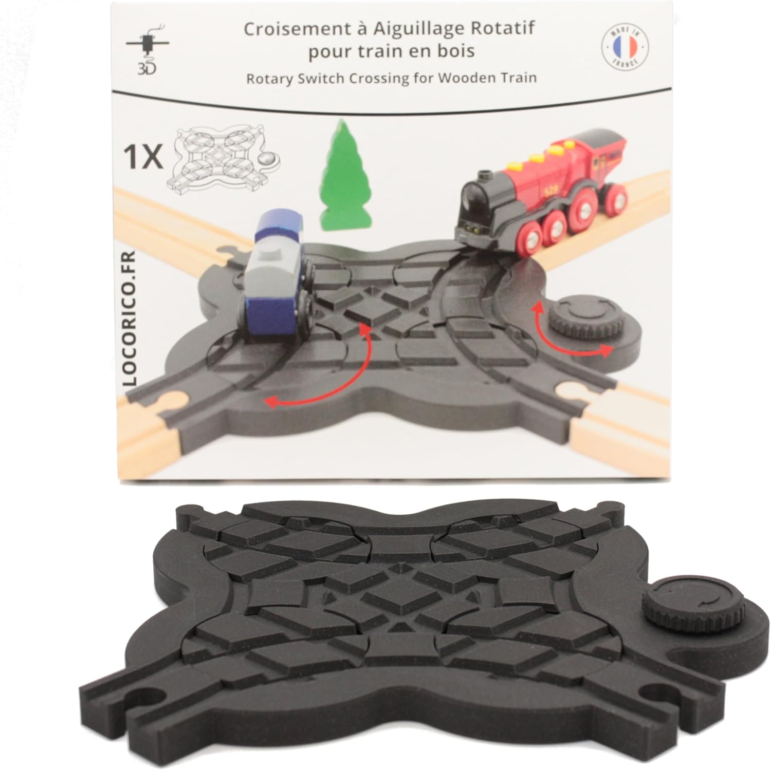 Contenuto della confezione: 1 crossover a 4 vie con una rotella rotante che consente di selezionare il percorso in prestito dal treno. Gli ingranaggi nascosti rendono questo crossover un po"magico. Il bambino può scegliere una delle tre direzioni possibili per il suo treno ruotando la rotellina. Compatibile con tutte le principali marche di treni in legno: Brio, Lillabo, Thomas And Friends, Melissa, ma anche con i binari venduti da negozi generali come Lidl o Oxybul. Progettato con amore per i miei figli e realizzato da me in stampa 3D in Francia (accanto a Grenoble). Stampato in PLA, una plastica biosource. I treni in legno incoraggiano l'apprendimento precoce attraverso lo sviluppo delle capacità motorie, la risoluzione dei problemi e l'acquisizione di abilità sociali ed emotive. Regalo senza tempo che farà felici per ore di gioco e divertimento da solo o per molti! Ideale per completare la collezione di treni in legno della famiglia. Un ottimo regalo di compleanno per bambini dai 3 anni in su.