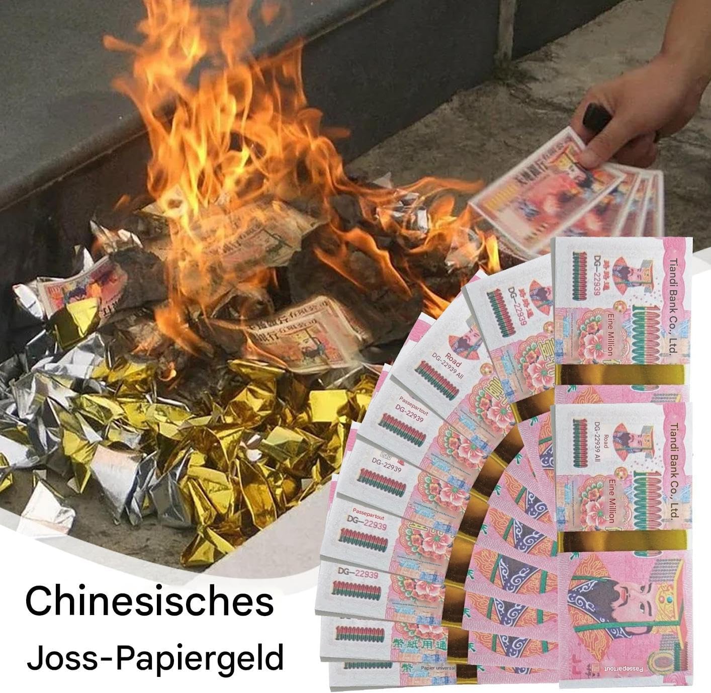 Oggetti rituali simbolici: Queste offerte tradizionali cinesi come carte di combustione e articoli commemorativi sono materiali essenziali di culto degli antenati. Conservano l'apprezzamento degli antenati in cerimonie significative. Portabilità ottimale: grazie ai metodi tradizionali di piegatura e alla forma del simbolo di fortuna, questi documenti commemorativi facilmente pieghevoli consentono una manipolazione chiara durante le cerimonie di combustione rituali e garantiscono un utilizzo senza sforzo durante i tradizionali atti di devozione. Versatilità pratica: elemento essenziale della devozione familiare, rafforzato dal suo ruolo nell'espressione della pietà e come dono centrale nelle cerimonie commemorative culturali per le celebrazioni tradizionali. Attento ai dettagli: arte tradizionale con accenti dorati, dettagli in rilievo e eccellente carta commemorativa per la valorizzazione dei rituali culturali Concentrazione delle benedizioni dell'Aldilà: incarna il simbolo della prosperità attraverso un denaro commemorativo di alta qualità, dona benedizione all'aldilà attraverso rituali culturalmente significativi nelle cerimonie funebri tradizionali