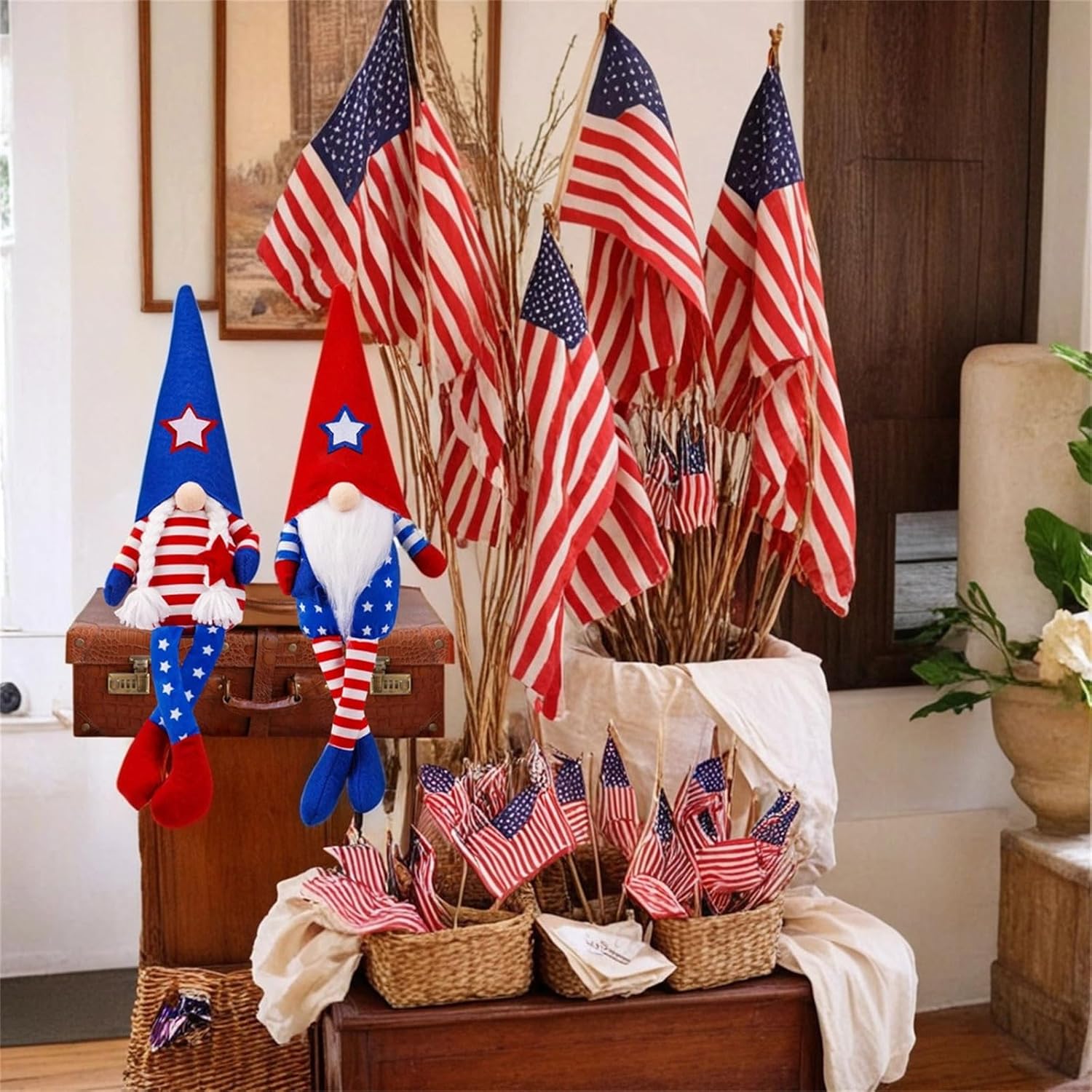 Festeggia la giornata patriottica con queste straordinarie decorazioni per bambole, con un motivo unico e dettagli raffinati Realizzata in tessuto, questa bambola gnomi non è solo solida ma anche morbida e confortevole Abbraccia l'indipendenza con questa bambola, per durare e per aggiungere tocchi unici al tuo spazio Mostra questa accattivante bambola sul tuo scaffale o scrivania per aggiungere un tocco unico alla tua stanza Per persone interessate alla cultura statunitense, questa bambola aggiunge un tocco di stile a qualsiasi arredamento