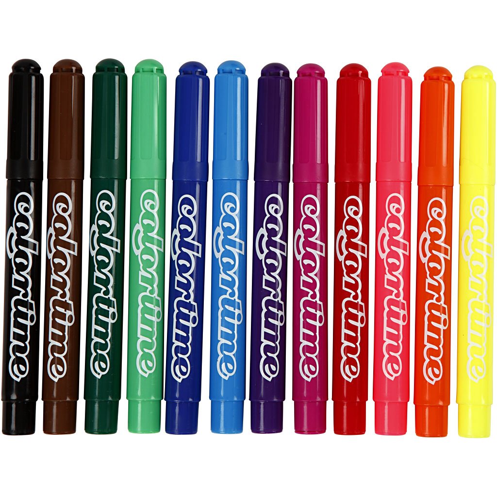 Pennarelli Colortime, colori classici, linea da 5 mm, 12 pezzi/1 confezione. Pennarelli a base d'acqua in colori graziosi e ad alta coprenza. Asciugare rapidamente. Cappe ventilate
