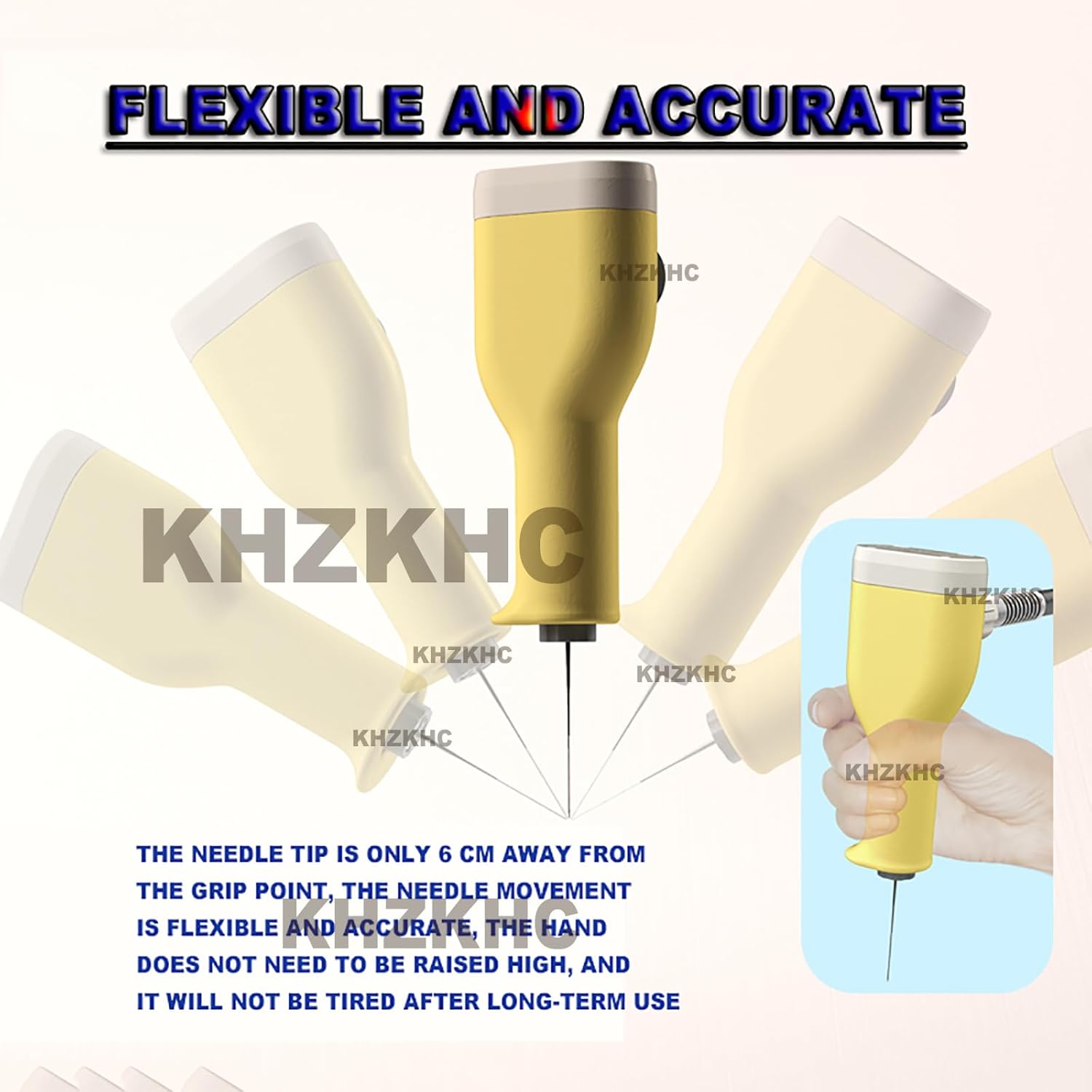 Motore di livello industriale ad alta potenza, 10 cuscinetti di precisione, protezioni elettriche multiple per stabilità, affidabilità, durata, sicurezza, funzionamento silenzioso e accoltellamento preciso senza rottura dell'ago. L'eccellente dissipazione del calore consente un uso a lungo termine ad alto carico. La corsa di pugnalata ultra lunga da 30 mm garantisce una penetrazione profonda e una forte forza di 2 kg (20N), risolvendo completamente i problemi di pugnalamento superficiale e immobilità per prestazioni superiori in varie applicazioni. Punta dell'ago a soli 6 cm dal punto di presa per flessibilità e precisione, riducendo l'affaticamento della mano durante l'uso prolungato. Include protezione per le dita anti-foratura, fori di ventilazione e texture antiscivolo per comfort e sicurezza. Il manico ergonomico si adatta comodamente alla curva del palmo, prevenendo scivolamenti e affaticamento, con calore e vibrazioni minimi (il manico pesa circa 110 g). Il design con albero flessibile di potenza garantisce un funzionamento comodo e senza ostacoli. Tre nidi di aghi a sgancio rapido compatibili con i modelli comuni: nidi a quattro aghi, aghi spessi e aghi fini. Aghi preconfigurati e ruotati per una rapida commutazione per migliorare l'efficienza nelle attività.