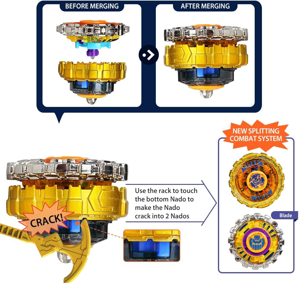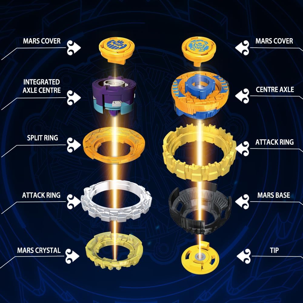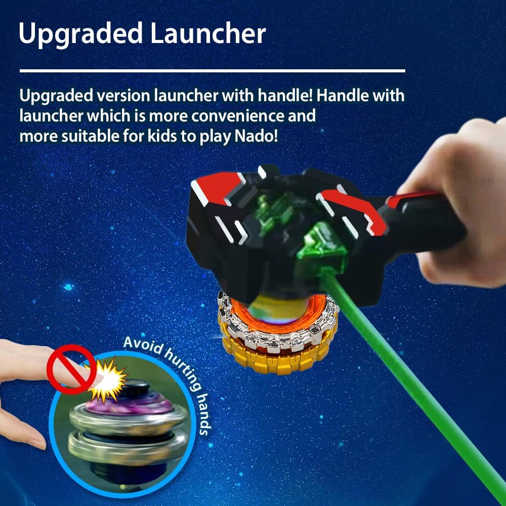 INFINITY NADO GIOCATTOLI - la nuova generazione di trottole Infinity Nado Glare Aspis-S! Nuovo design per nuove strategie di combattimento! SCEGLI LA TUA MODALITÀ - modalità Split, la trottola si divide in due in modo casuale durante il combattimento per sorprendere l'avversario e attaccarlo da più lati; modalità Merge, le due parti della trottola rimangono unite per un attacco più massiccio! REGOLE DI GIOCO - Le regole all'interno delle arene di battaglia Infinity Nado (vendute separatamente) sono semplici: combatti contro la trottola del tuo avversario, il primo che rimane in piedi e gira vince! GIOCATTOLO DA 5 ANNI - Le trottole e gli accessori Nado sono adatti ai bambini dai 5 anni in su. Le trottole Nado sono facili da maneggiare e possono essere utilizzate innumerevoli volte durante le battaglie. REGALO PER BAMBINI - Regala al tuo bambino questo giroscopio Infinity Nado per il suo compleanno o per Natale e fagli vivere un incredibile duello contro un avversario formidabile. Include 2 Nado in metallo, 1 supporto, 1 lanciatore e 1 strumento di montaggio.