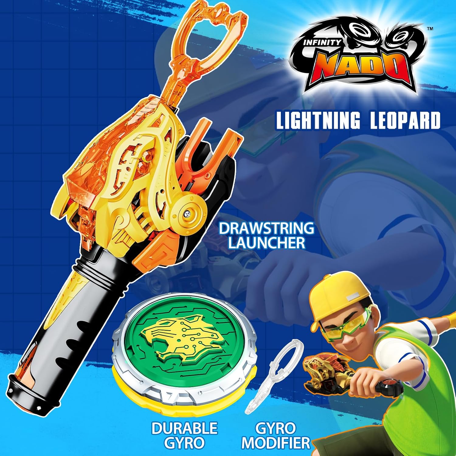 Infinity Nado - Trottole, chi sarà il più forte? Combatti dure battaglie con i tuoi amici con le trottole della serie standard Infinity Nado! Il suo anello d'attacco in metallo gli conferisce la potenza e la velocità necessarie per vincere ogni duello! Trottole con lanciatori - La nuova gamma di trottole Nado con lanciatori permette al bambino di accelerare durante le sfide in alcune arene. I lanciatori decuplicano la potenza delle trottole, rendendo più facile tenere il passo degli avversari nel vivo della battaglia. REGALO PER BAMBINI - Regalate una trottola Nado come regalo di compleanno o di Natale e lasciate che i vostri bambini sperimentino incredibili duelli contro avversari temibili. Sono disponibili più trottole per aumentare la competizione. GIOCATTOLO PER BAMBINI 5 ANNI - Le trottole Nado e i loro accessori sono adatti ai bambini dai 5 anni in su. La trottola è un giocattolo per bambini facile da usare e può essere utilizzata innumerevoli volte per un'intensa esperienza di combattimento. IL KIT COMPRENDE - una trottola Infinity Nado Lightning Leopard, un trasmettitore per la trottola, un attrezzo per il montaggio.