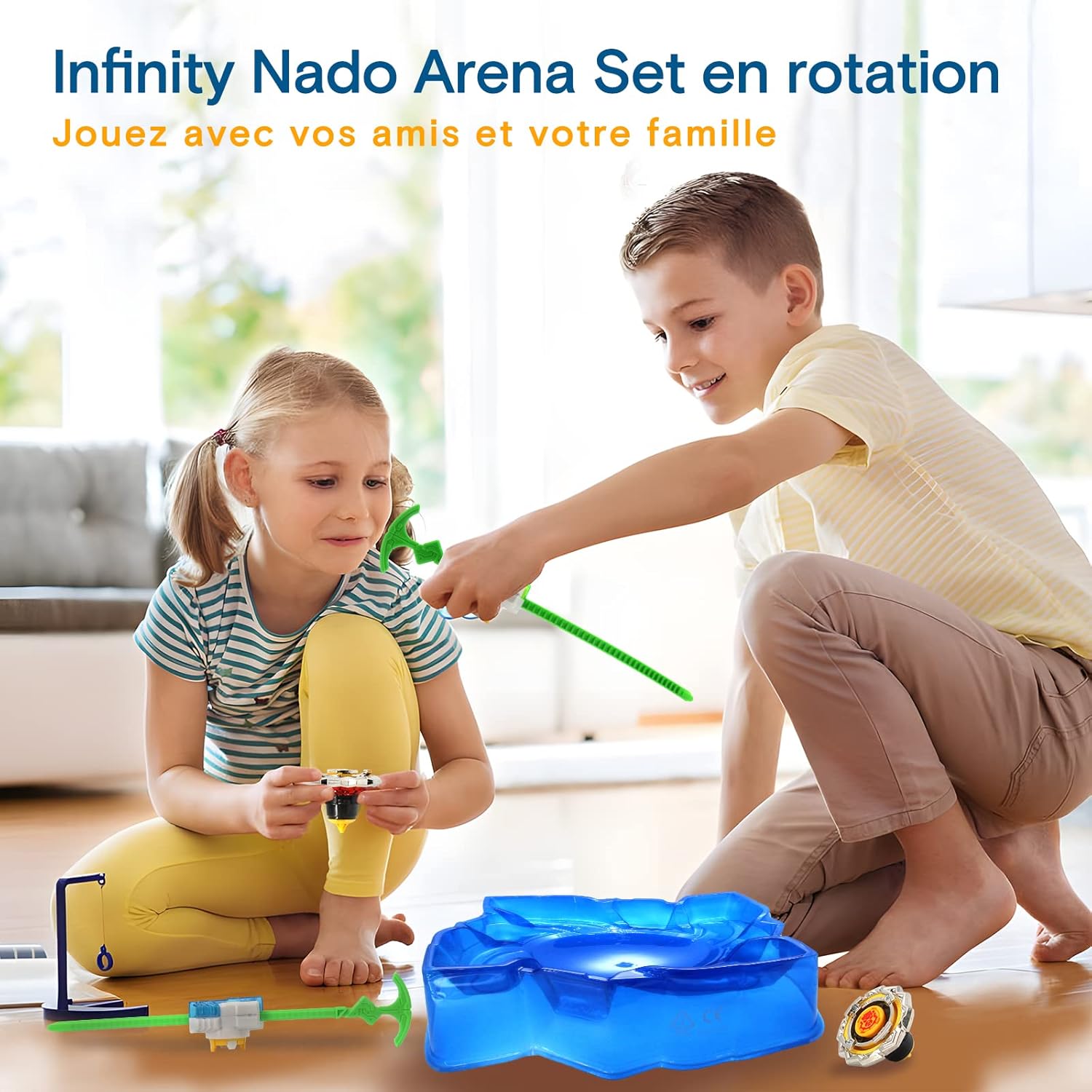 SCEGLI LA TUA MODALITÀ – Con questa trottola sono possibili due modalità di gioco: in modalità Split, la trottola si divide in due in modo casuale durante il combattimento per sorprendere il tuo avversario e attaccarlo da più lati; in modalità fusione, le due parti della parte superiore rimangono assemblate per un attacco più massiccio! REGOLE DEL GIOCO – Le regole delle Infinity Nado Battle Arenas (vendute separatamente) sono semplici: prendi la trottola del tuo avversario, il primo che rimane in piedi e gira vince! Dai libero sfogo alla fantasia di tuo figlio per stabilire nuove regole competitive quanto quelle precedenti. GIOCATTOLO PER BAMBINI DA 5 ANNI – Le trottole Nado e i loro accessori sono adatti a bambini dai 5 anni in su. Le trottole Nado sono giocattoli per bambini facili da usare e possono essere utilizzate innumerevoli volte durante le battaglie. Porta il tuo bambino alla competizione e fagli apprendere diverse tecniche di gioco, incentrate sull'attacco e/o sulla difesa, e migliorare le prestazioni della sua trottola su ogni terreno utilizzato. REGALO BAMBINI - Per un compleanno o per Natale, regala questo pack con la trottola 2 in 1 Infinity Nado e fai vivere ai tuoi bambini incredibili duelli contro formidabili avversari. NOTA – Sul trasmettitore è possibile installare solo i giroscopi superiori. Non è possibile montare un altro giroscopio solo sul trasmettitore.