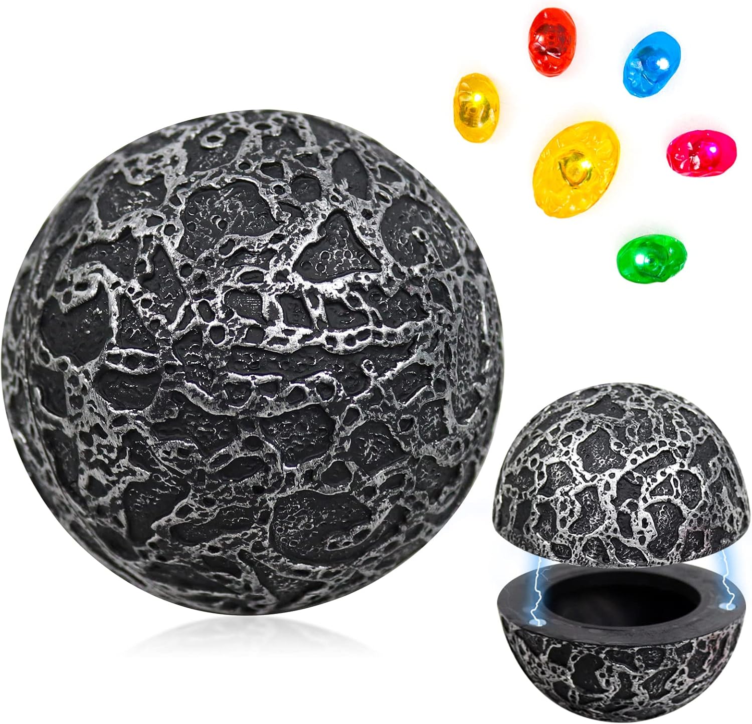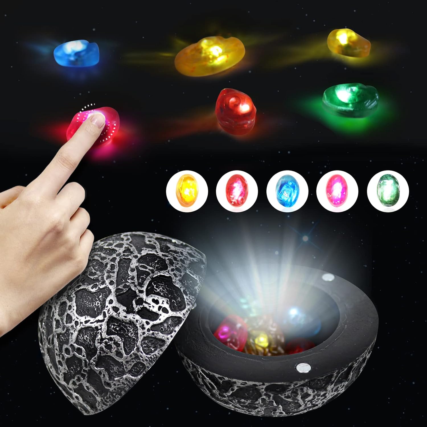 Il pacchetto include: 6 gemme dell'infinito + sfera ORB Star Lord Power Caratteristiche: Ogni gemma ha un interruttore, è necessario premere nuovamente le gemme sul metallo. La luce LED delle gemme ha 3 modalità, statica, lenta, lampeggiante. La prima pressione lampeggia, la doppia pressione è lenta, la terza volta che si preme si accende una luce LED statica. [Materiale]: il nostro puntello Infinity Orb sceglie PVC rigido di alta qualità. Design delicato, grande maestria. Diametro delle palline: 8 cm. Occasione: questi misteriosi oggetti di scena della galassia sono perfetti per Halloween, feste in maschera, feste di cosplay, film da collezione e decorazioni per la casa. È anche un'ottima decorazione per la tua casa per una collezione.