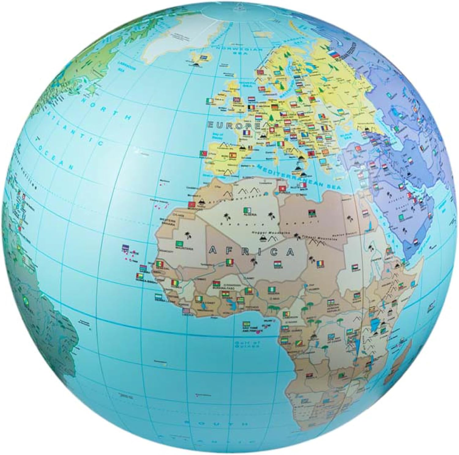 Decorative: To suspend or place on its clear ring Complete: Representation of flags from every country User-friendly: Can be passed from person to person Giant and decorative, this globe intrigues those passionate about geography and who have a certain curiosity on the planet. Its graphic design, the printing quality, the harmony in which the colours come together, its geographic and political mapping and the presence of the flags of all the countries make it an exceptional product.