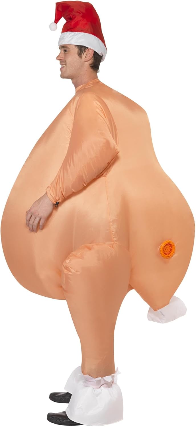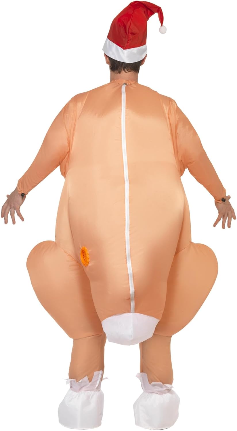 I know it's expensive, but it's worth the money. This costume takes dress-up to a whole new level. It has an in-built battery-powered fan which requires 4 AA batteries. You can leave the fan on permanently (highly recommended) to constantly elevate and inflate your status as a roast turkey. With new batteries it has a life of 3 hours if on constantly - not bad if you ask me! The continuous production of air within the costume simultaneously cools the wearer from the inside, preventing overheating. Just a warning though - dancing vigorously will still warm this turkey up till it is piping hot and ready for eating!