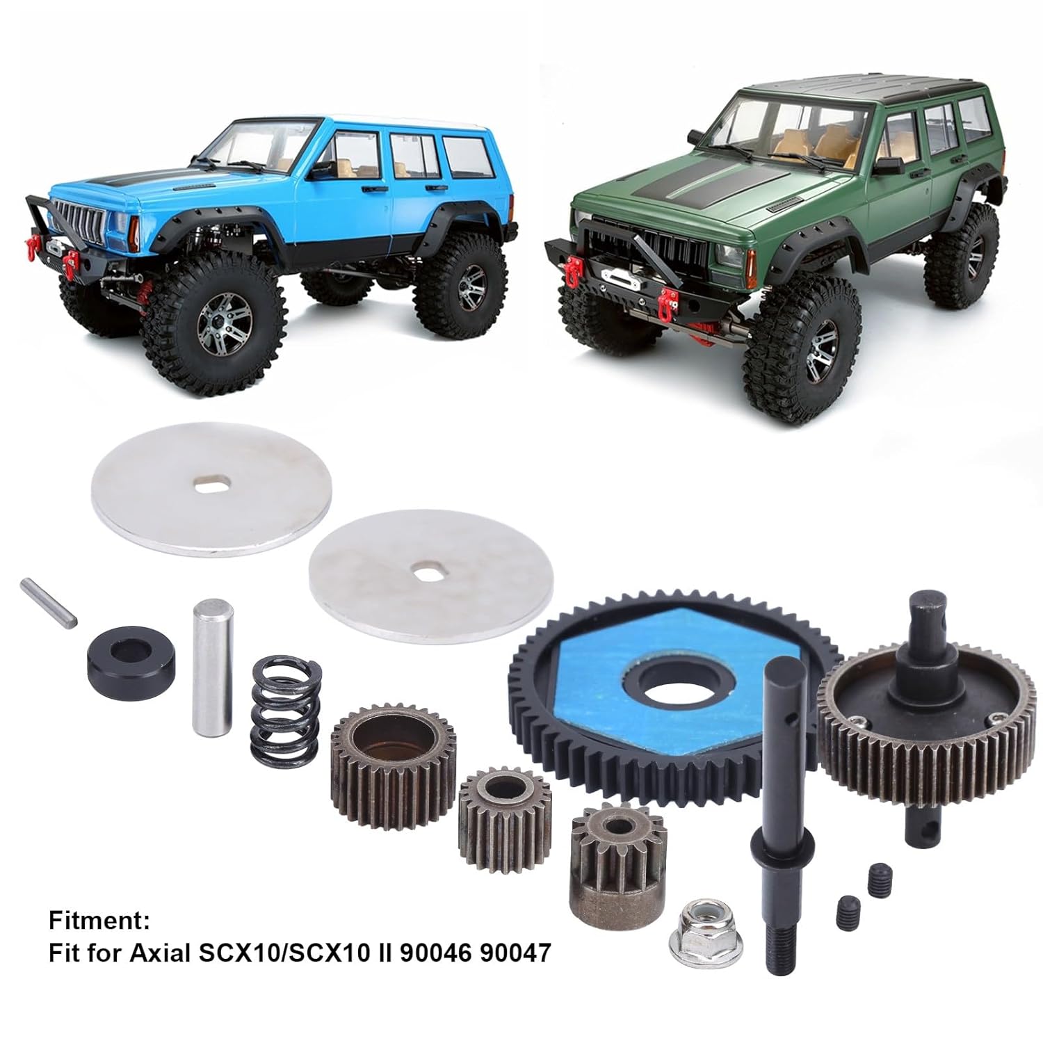 [COSTRUZIONE IN ACCIAIO AD ALTA RESISTENZA] Realizzati in acciaio di alta qualità e ad alta resistenza, questi ingranaggi sono progettati per resistere a un uso intensivo. La sua struttura solida e stabile garantisce resistenza e lunga durata, rendendolo affidabile per gli aggiornamenti delle tue auto RC. [SUPERFICIE ANODIZZATA RESISTENTE ALLA RUGGINE] La superficie anodizzata dura di questi ingranaggi è stata trattata per proteggerla dalla ruggine, garantendo prestazioni di lunga durata anche in condizioni difficili. Questo trattamento aumenta la resistenza all'usura del cambio e mantiene la tua auto RC senza intoppi. [FACILE INSTALLAZIONE E SOSTITUZIONE] Progettati per un'installazione e uno smontaggio senza problemi, questi ingranaggi sono un sostituto perfetto per parti vecchie o danneggiate. La loro costruzione affidabile e durevole ti consente di dedicare meno tempo alle riparazioni e più tempo alla guida della tua auto RC. [SET COMPLETO DI INGRANAGGI] Questo set include un ingranaggio cilindrico 56T, un ingranaggio motore 13T e piccoli ingranaggi 20T/28T, fornendo tutto il necessario per prestazioni ottimali. L'inclusione di accessori aggiuntivi come guarnizioni, viti e una molla garantisce una soluzione di aggiornamento completa. [ADATTO PERFETTO PER I MODELLI ASSIALI] Progettati appositamente per i modelli Axial SCX10 e SCX10 II 90046 e 90047, questi ingranaggi sono un accessorio meraviglioso per la tua auto RC. La loro vestibilità precisa e la costruzione di qualità li rendono un aggiornamento essenziale per gli appassionati.