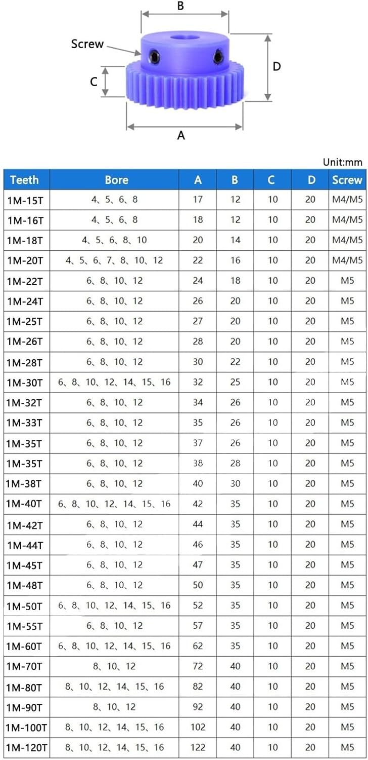 Selezione delle marce: scegli tra un'ampia gamma di opzioni, tra cui 15T, 16T, 18T, 20T, 22T, 24T, 25T, 26T, 28T, 30T, 32T, 33T, 35T, 36T, 38T e 40T. Questi pignoni a denti dritti sono ideali for personalizzare e ottimizzare i tuoi sistemi di trasmissione. Ingranaggi cilindrici: realizzati in nylon blu, i nostri ingranaggi cilindrici sono progettati for garantire longevità e prestazioni eccezionali in diversi macchinari e applicazioni meccaniche. Foro interno: progettati con un foro interno da 8 mm, i nostri ingranaggi garantiscono un processo di installazione semplice, consentendo di risparmiare tempo e fatica preziosi durante il montaggio. Trasmissione di potenza: con un'altezza dei denti di 10 mm, i nostri ingranaggi a denti dritti garantiscono un trasferimento di potenza affidabile ed efficiente, riducendo al minimo l'usura e garantendo una maggiore durata nel tempo. Questi ingranaggi in plastica sono anche un ottimo ricambio per parti vecchie o rotte, adatti alla produzione di modelli fai da te.