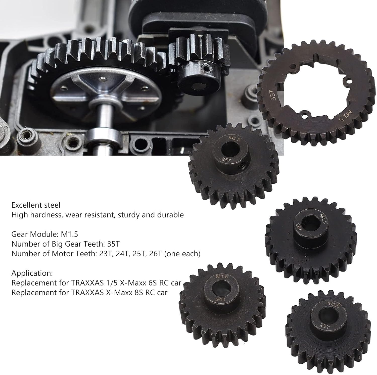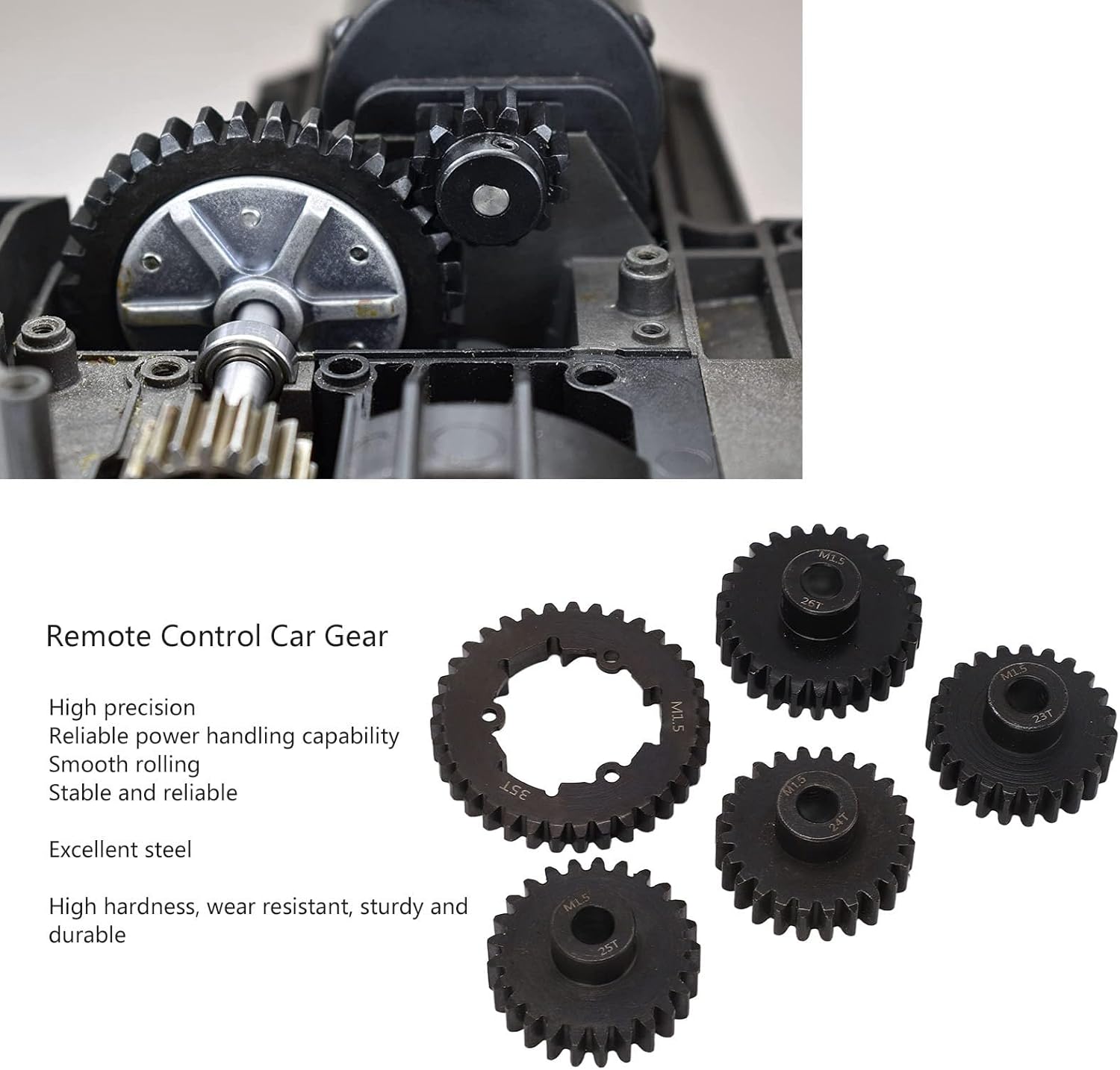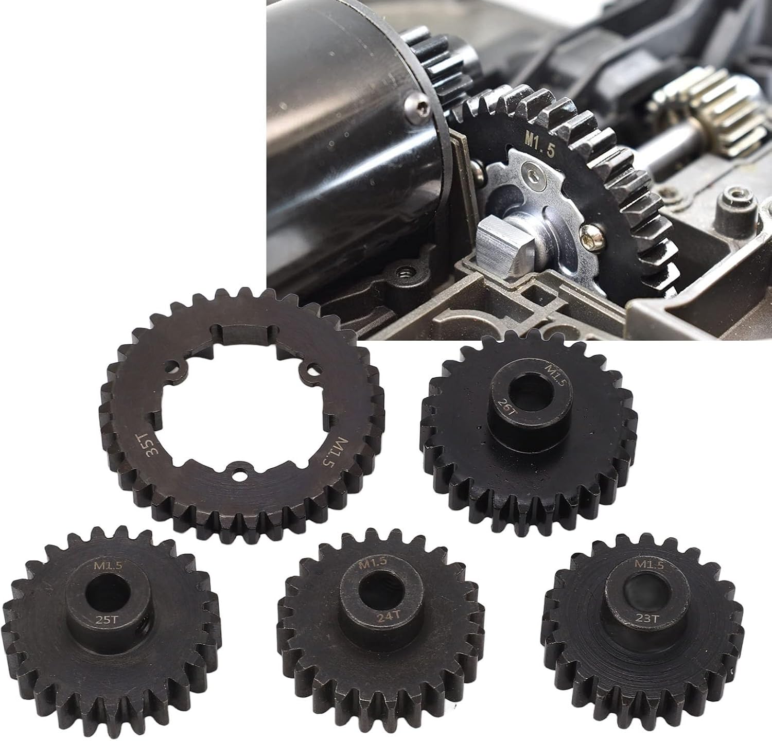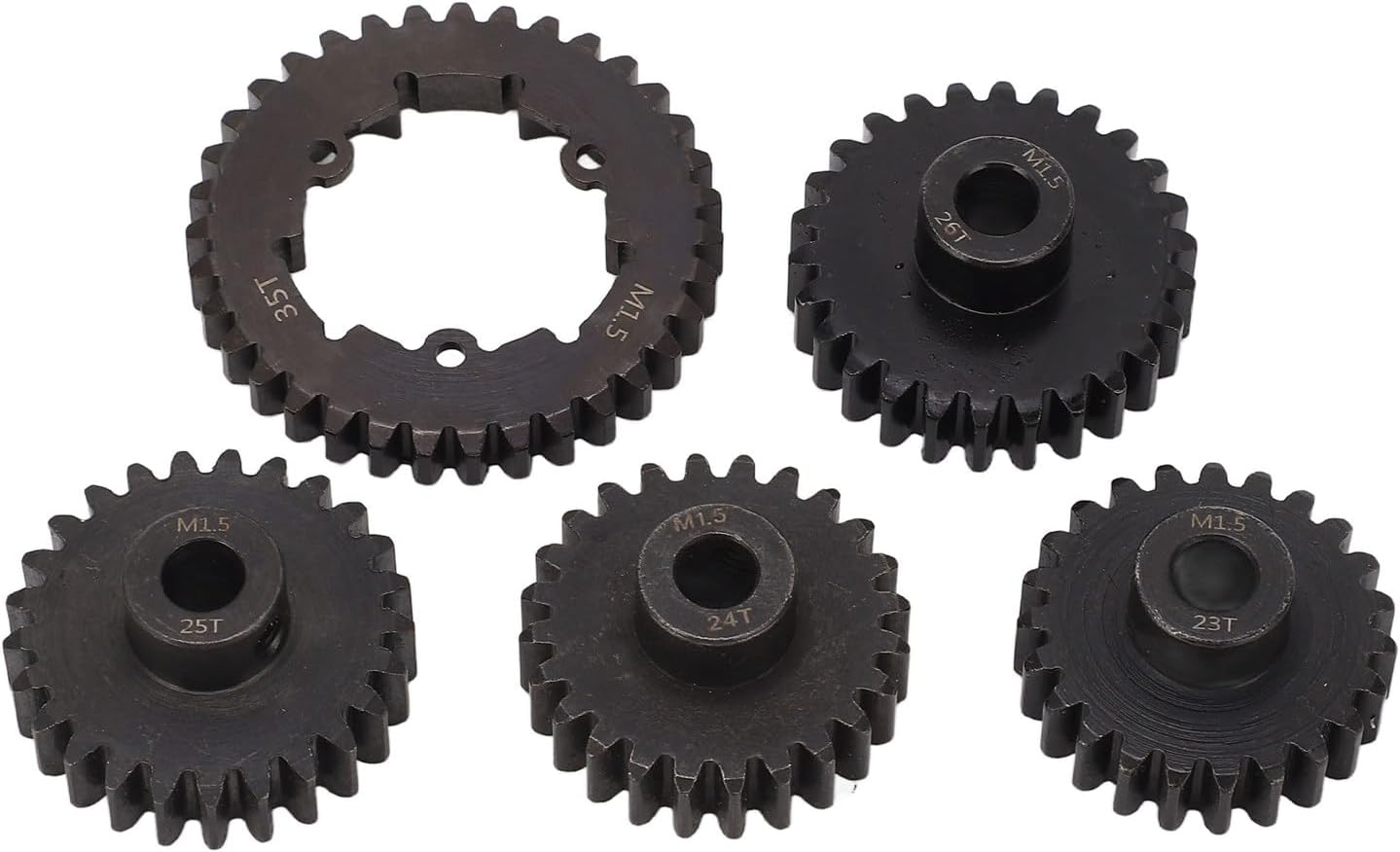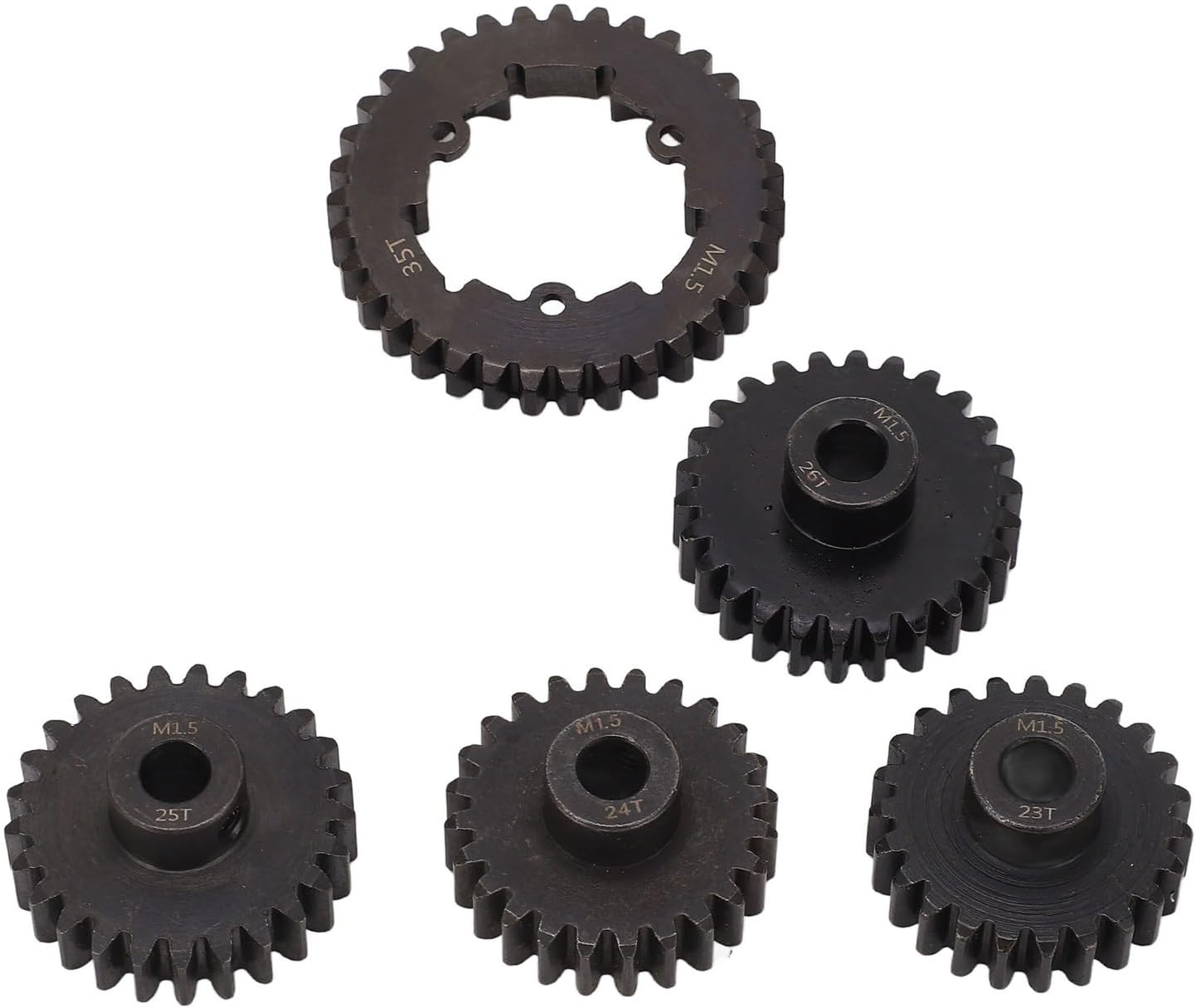 【Uso versatile】 Questo set di ingranaggi è progettato come sostituto diretto dei veicoli telecomandati. Stai certo di un aggiornamento senza soluzione di continuità che mantiene le prestazioni e la maneggevolezza della tua preziosa auto RC 【Velocità personalizzabile】 La velocità è determinata dal rapporto di trasmissione, che può essere regolato con precisione in base alle tue preferenze. Questo kit completo include 4 pignoni (23T, 24T, 25T, 26T) da abbinare all'ingranaggio cilindrico a 35 denti, consentendoti di trovare l'equilibrio tra velocità massima e accelerazione 【Acciaio ad alta resistenza】 Realizzati in acciaio temprato di alta qualità, questi ingranaggi sono costruiti per resistere ai rigori della guida fuoristrada ad alte prestazioni. La struttura robusta garantisce una trasmissione affidabile della potenza e una lunga durata del tuo veicolo RC 【Acciaio ad alta resistenza】 Realizzati in acciaio temprato di alta qualità, questi ingranaggi sono costruiti per resistere ai rigori della guida fuoristrada ad alte prestazioni. La struttura robusta garantisce una trasmissione affidabile della potenza e una lunga durata del tuo veicolo RC 【Installazione semplice】 Questo kit di ingranaggi viene fornito completo di tutto l'hardware di montaggio necessario, consentendo un processo di installazione semplice e senza sforzo. Torna in pista rapidamente e con sicurezza