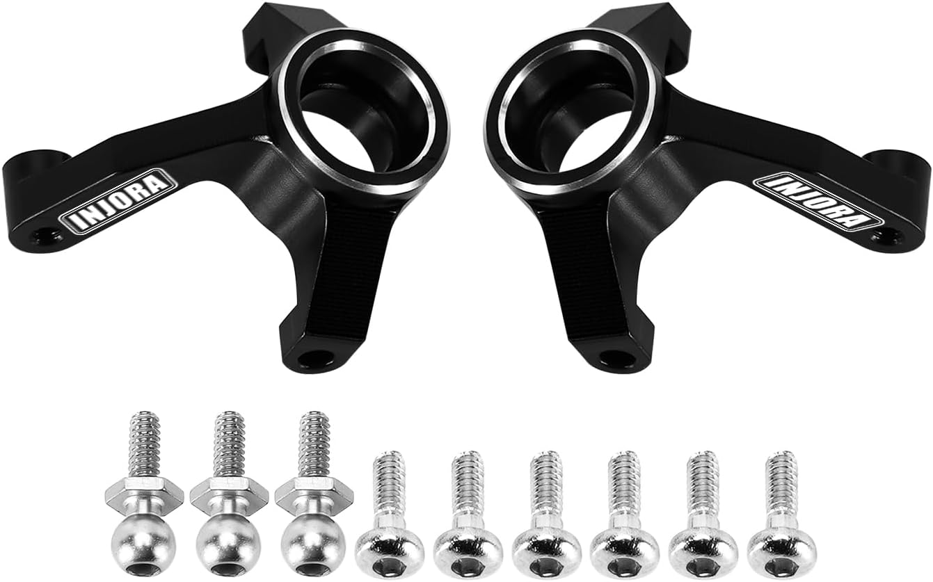 Installazione semplice, sostituisce direttamente i pezzi originali. Realizzato in alluminio leggero e resistente. Finitura anodizzata nera con bordi argentati per un aspetto accattivante. Lavorazione CNC ad alta precisione. Contenuto della confezione: 2*Fuselli Anteriori, 2*Supporti Caster C-Hubs, 2*Bracci di Sospensione Anteriori e Posteriori, 2*Mozzi Posteriori.