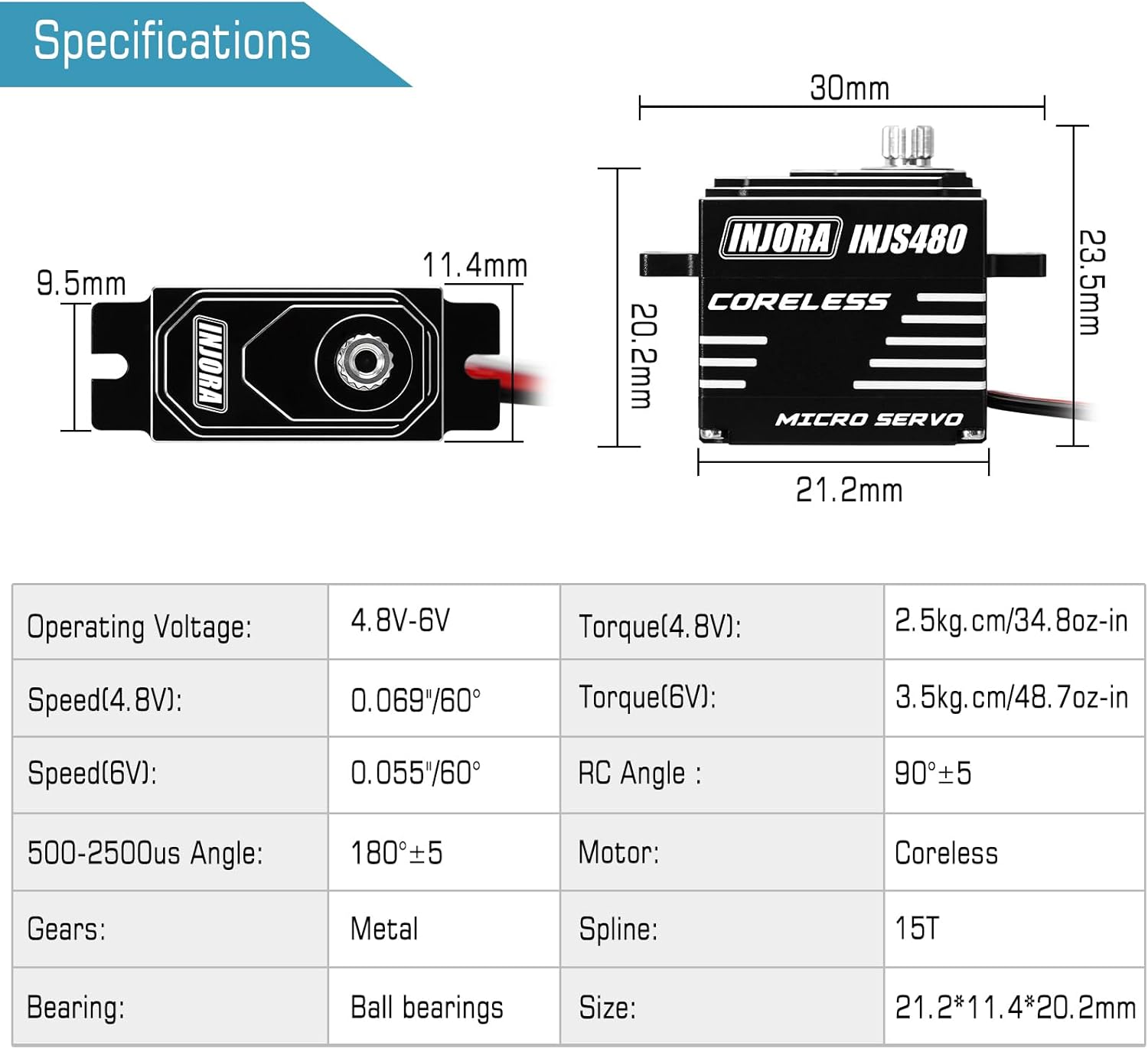 Custodia interamente in alluminio: robusta, resistente e con eccellente dissipazione del calore. Motore senza nucleo: garantisce una risposta più rapida, un funzionamento più fluido e un'affidabilità duratura. Servo saver in alluminio: protegge gli ingranaggi dagli urti e prolunga la durata del servo. Prestazioni elevate – Velocità e coppia maggiori per una sterzata più potente e precisa. Dimensioni identiche a quelle dell'AS-1 di serie – Perfetta compatibilità e facile aggiornamento per Losi Micro-B e Micro-T.