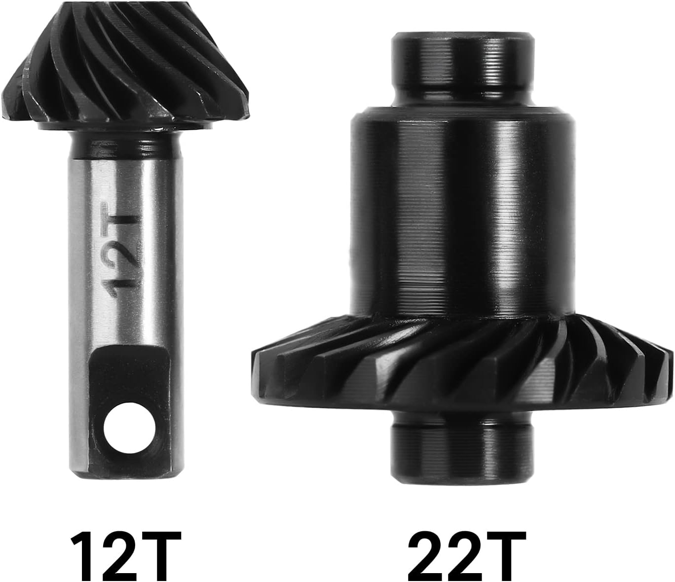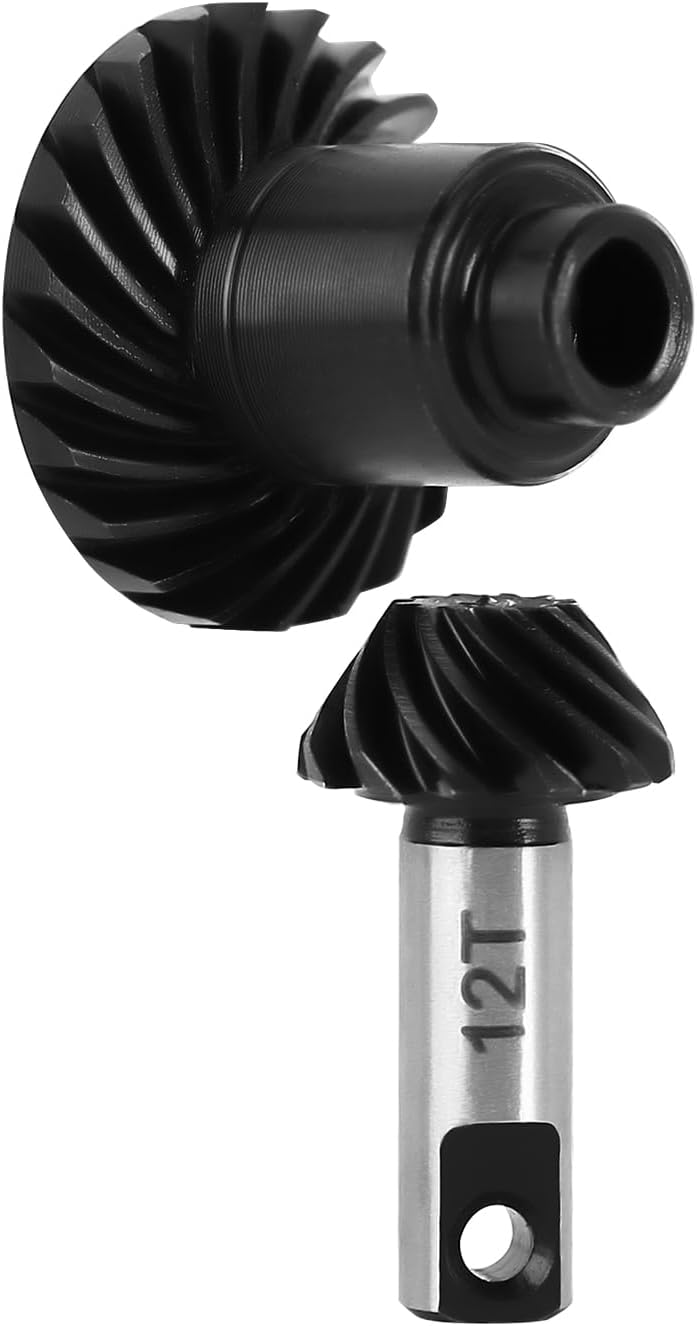 Ingranaggi in acciaio legato 20CrMo lavorati a CNC, meno vibrazioni, meno rumore, meno usura rispetto agli ingranaggi di serie. Sostituire gli ingranaggi in plastica di serie, montare assali anteriori o posteriori TRX4M. Gli ingranaggi elicoidali offrono una maggiore resistenza e un funzionamento regolare rispetto agli ingranaggi cilindrici di fabbrica. Gli ingranaggi Overdrive 12/22T aumentano la velocità di circa il 9%, portano potenza agli assi e creano una maggiore altezza da terra. Vestito per TRX4M 1/18 Bronco Defender RC Crawler Upgrade.