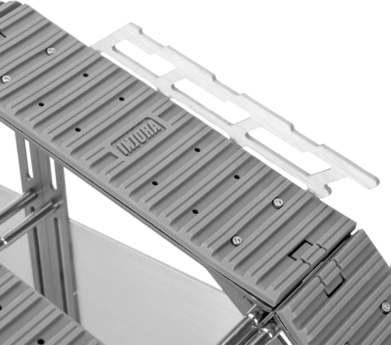 Costruzione in alluminio con pavimentazione in silicone, costruita per durare e in grado di resistere a molta usura. Design pieghevole per una comoda conservazione. Dotato di manuale di istruzioni, facile da installare. Un meraviglioso strumento di ostacolo per praticare le abilità di gestione, specialmente nelle competizioni di arrampicata. Che tu sia un principiante o un appassionato di auto RC esperto, il kit a ostacoli del percorso ponte offre infinite ore di divertimento impegnativo. Questa tuta kit di ostacoli del ponte RC per SCX24 AX24 TRX4M FCX24 Axial 1/18 1/24 scala RC cingolato / camion / auto.