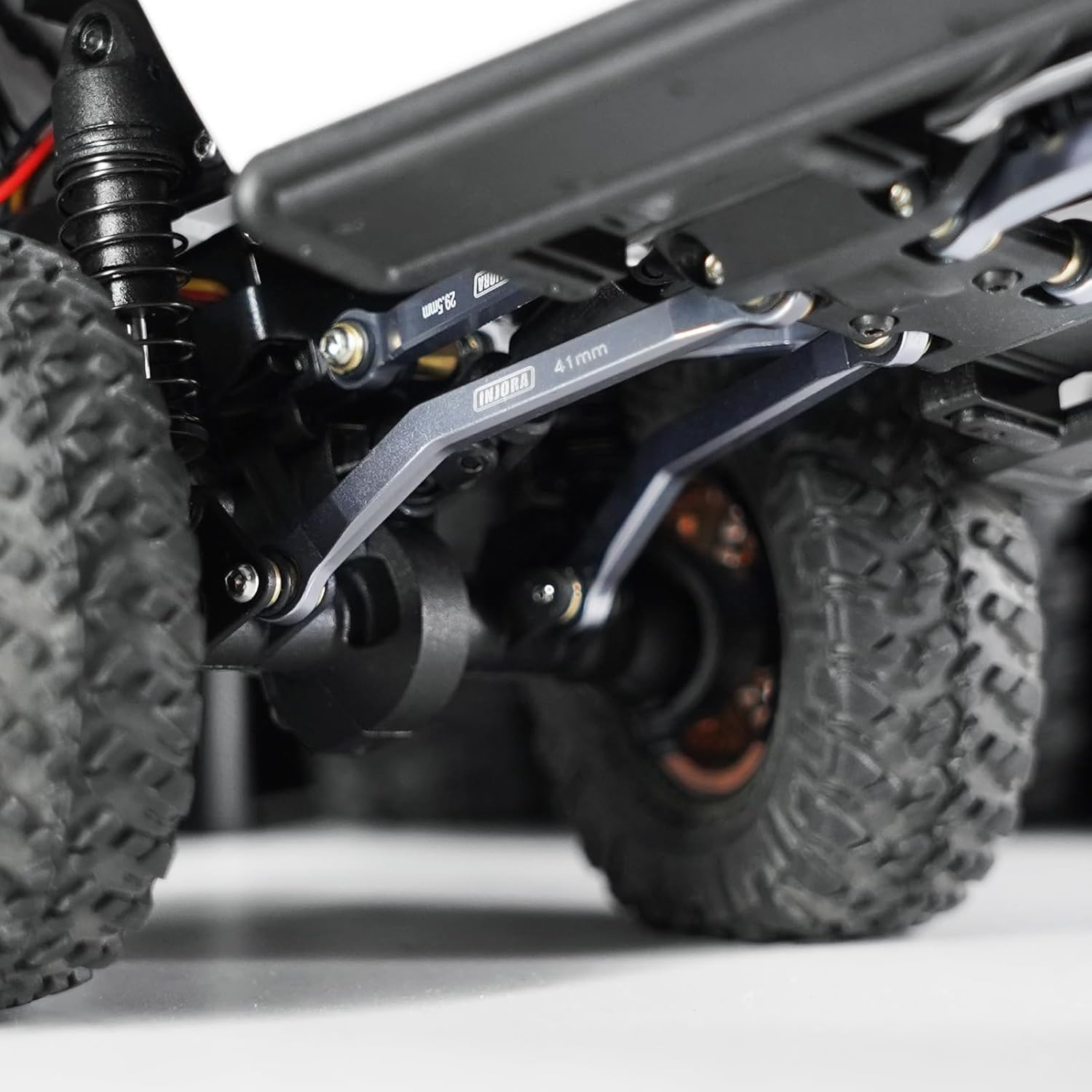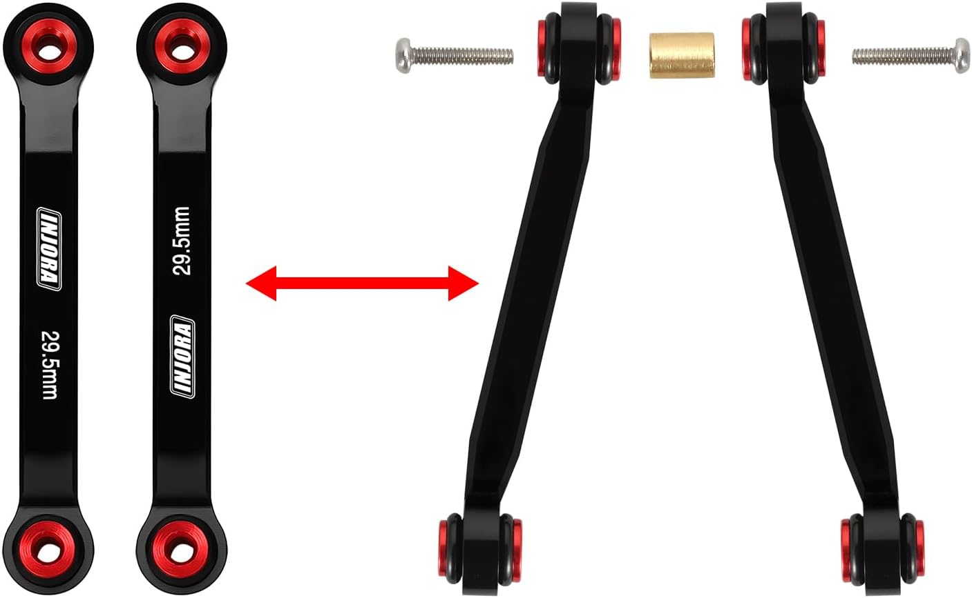 【Lavorazione CNC di Precisione】Alluminio leggero ma resistente (13g) con finitura anodizzata nera/grigia per una maggiore resistenza alla corrosione. 【Maggiore Altezza da Terra】Il design ad alta luce riduce al minimo lo sfregamento del telaio durante le salite e sostituisce il collegamento a Y originale dello SCX24 per prevenire l'attrito dell'albero di trasmissione, garantendo un funzionamento più fluido. 【Stabilità Migliorata】Riduce l'avvolgimento dell'asse e lo sterzo indesiderato, assicurando un migliore controllo e trazione su terreni accidentati. 【Compatibilità Perfetta】Sostituzione diretta per 1/24 Axial SCX24 GX470 senza bisogno di modifiche, ottimizzata per un'installazione senza problemi. 【Contenuto della Confezione】1x set 4 link ad alta luce per migliorare il tuo RC crawler.